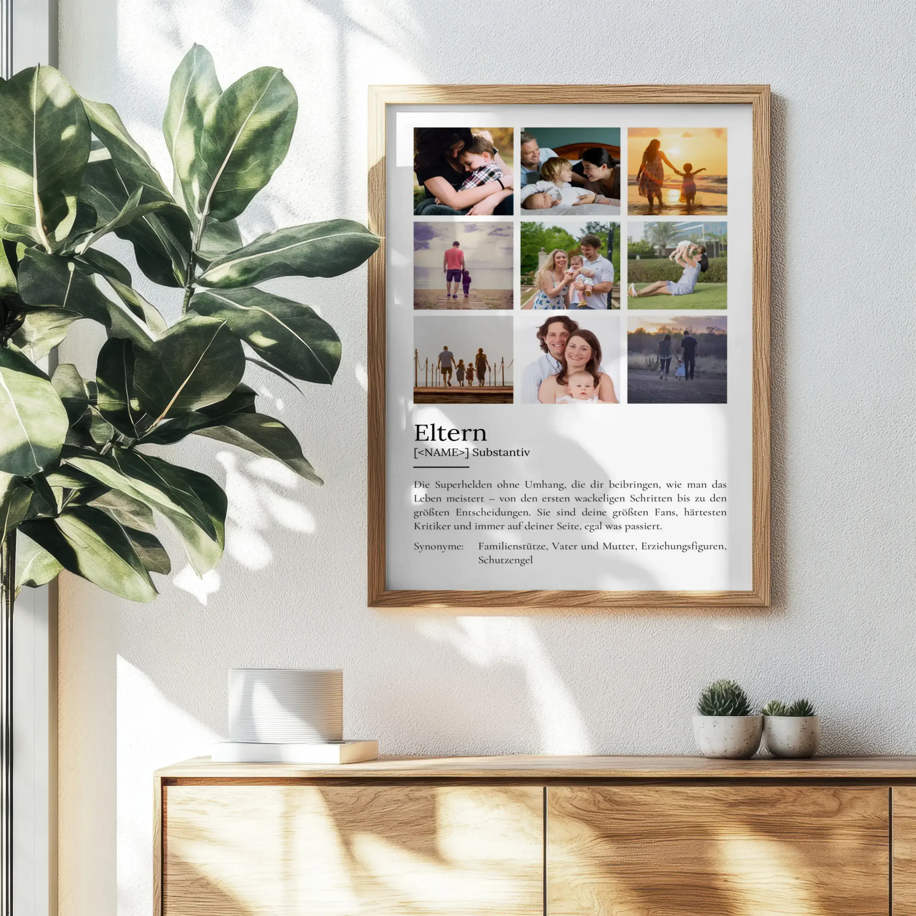 "Eltern" Definition - Geschenk als Poster, Leinwand erstellen. Eigene Fotos und Text.