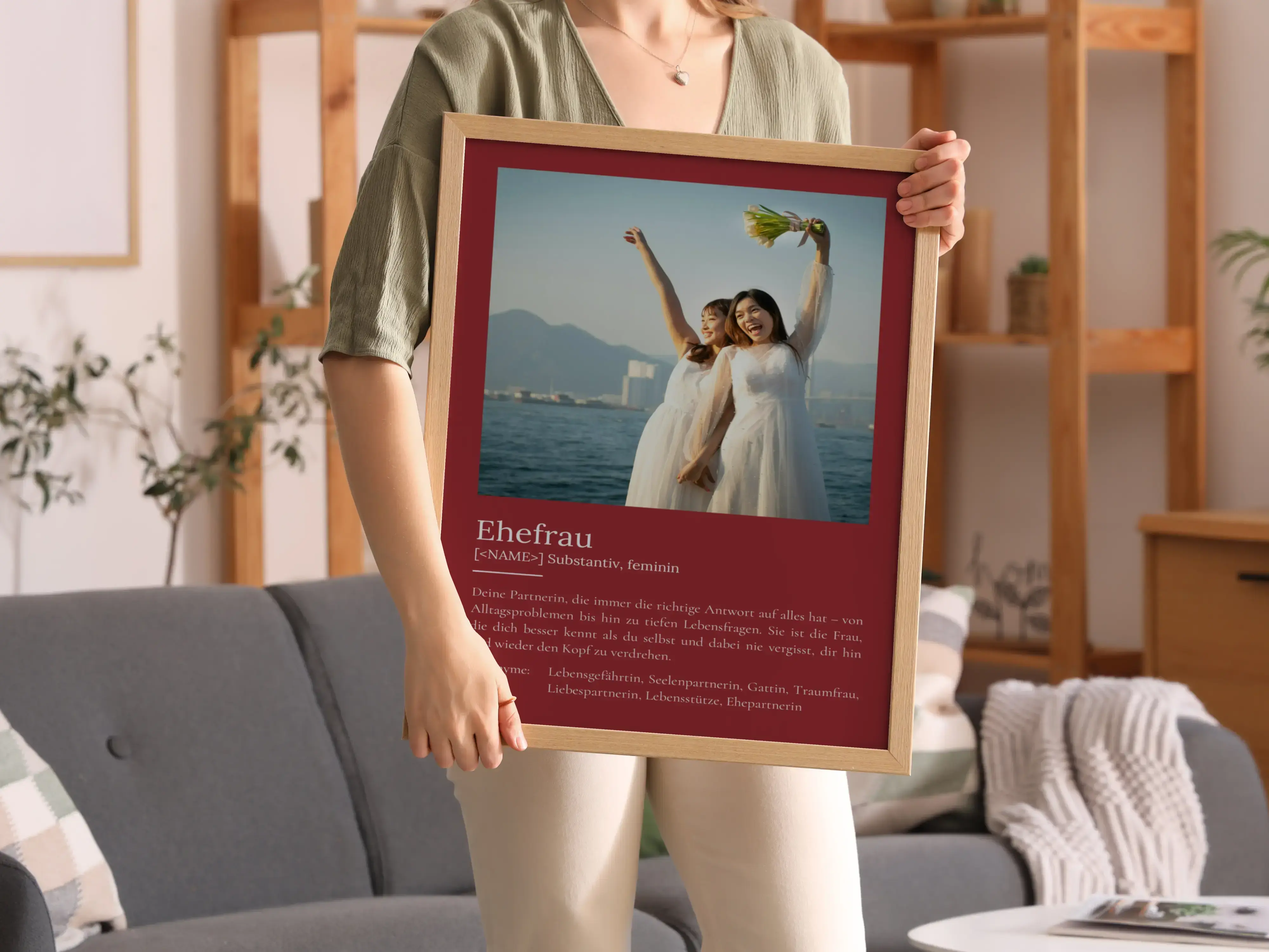 Ein Definitions-Poster Ehefrau im Duden-Stil – kreatives, personalisiertes Geschenk mit eigenem Foto.