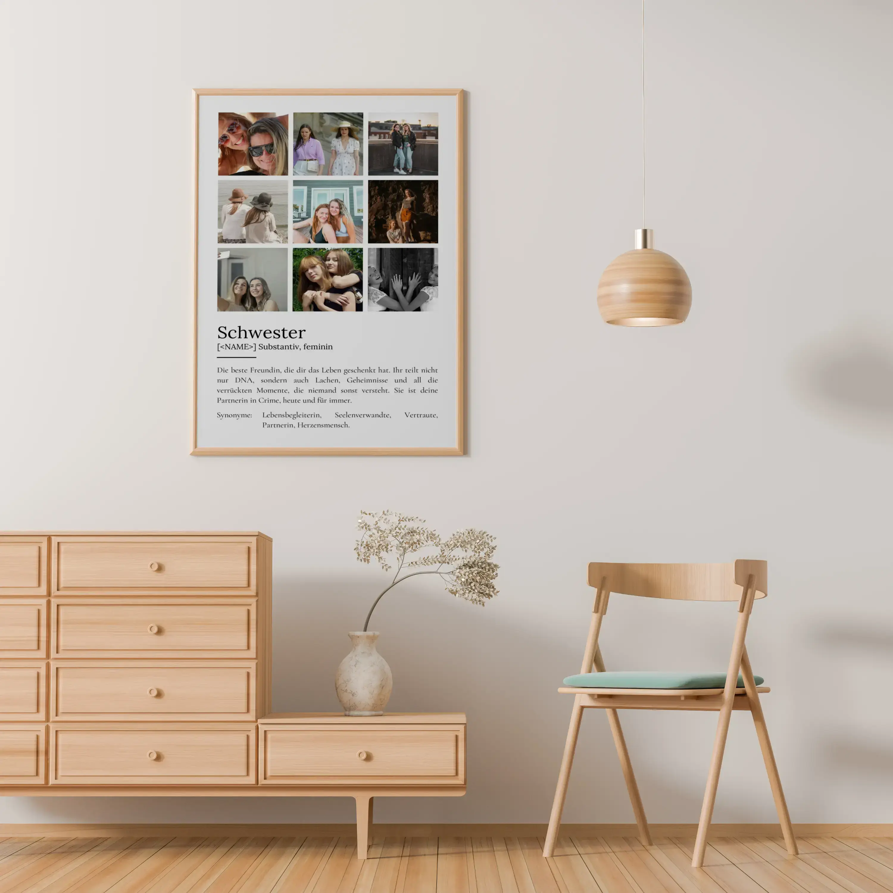 "Schwester" Definition - Geschenk als Poster, Leinwand erstellen. Eigene Fotos und Text.