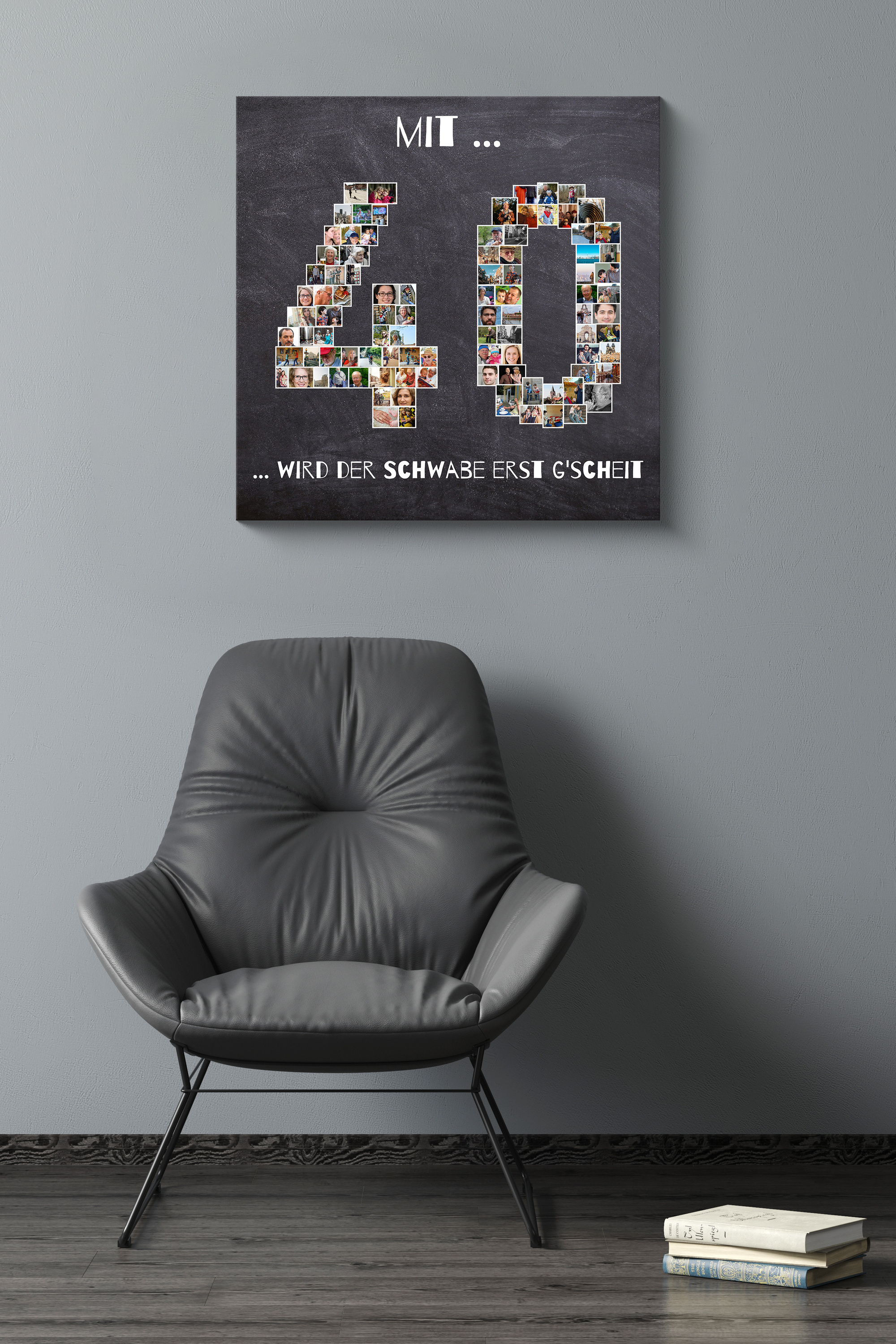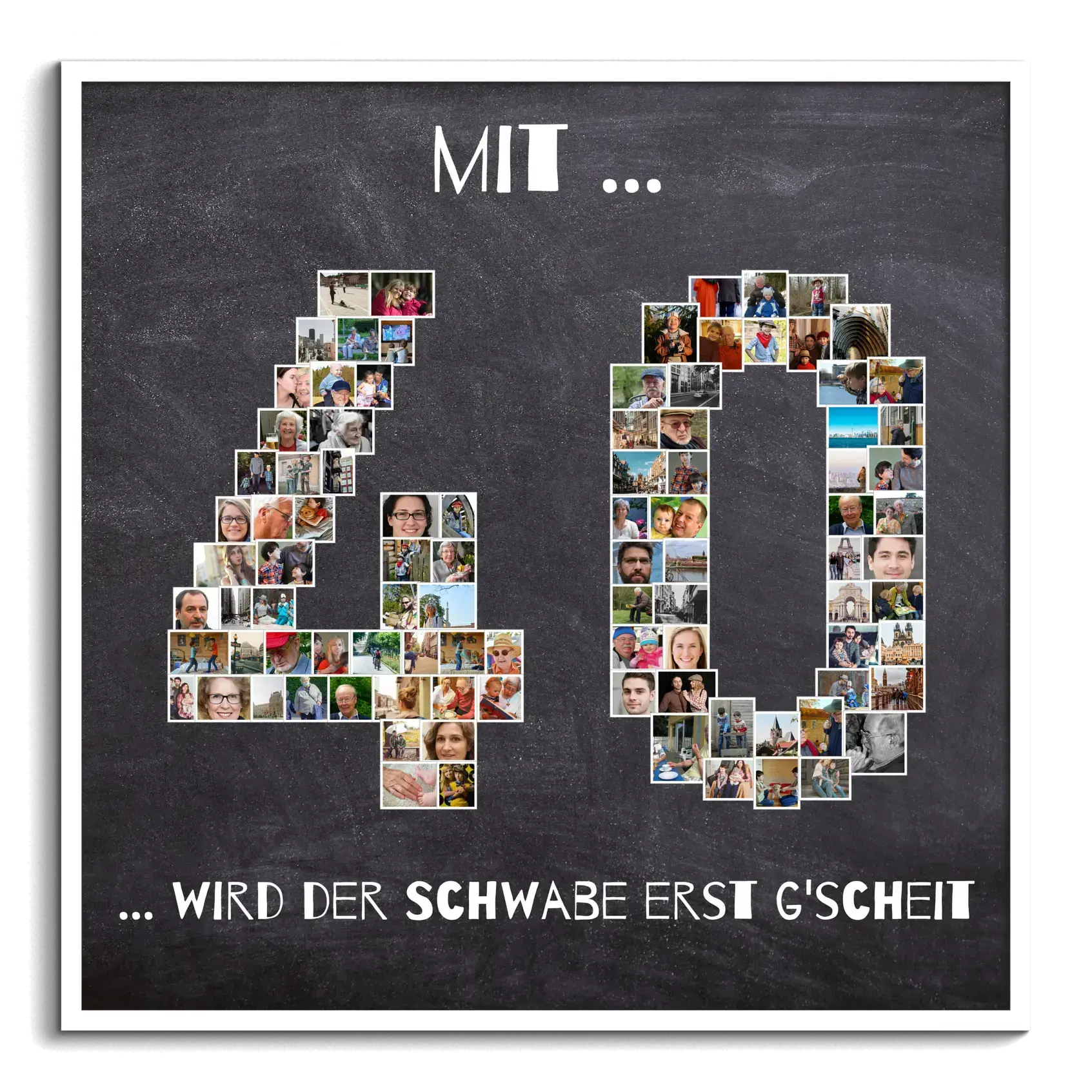 Fotocollage als Zahl mit individueller Botschaft zum runden Geburtstag