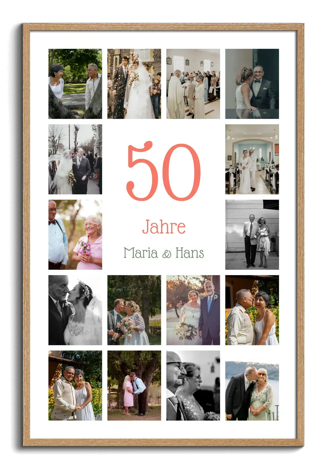 Goldene Hochzeit als Jubiläums-Zahl-Collage: große Zahl, Namen & Text, 20–80 Fotos, anpassbar