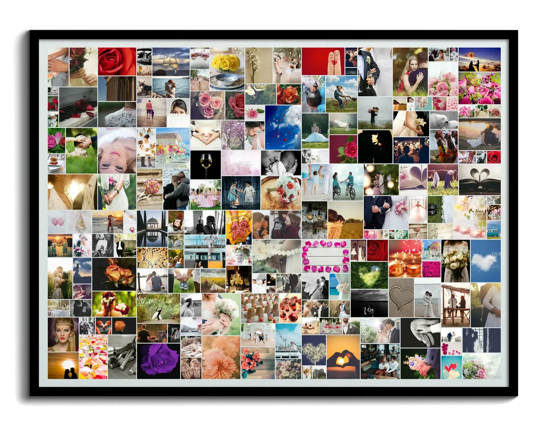 Kreative Hochzeitscollage aus bis zu 200 Fotos, ideal als persönliches Geschenk oder stilvolle Erinnerung.