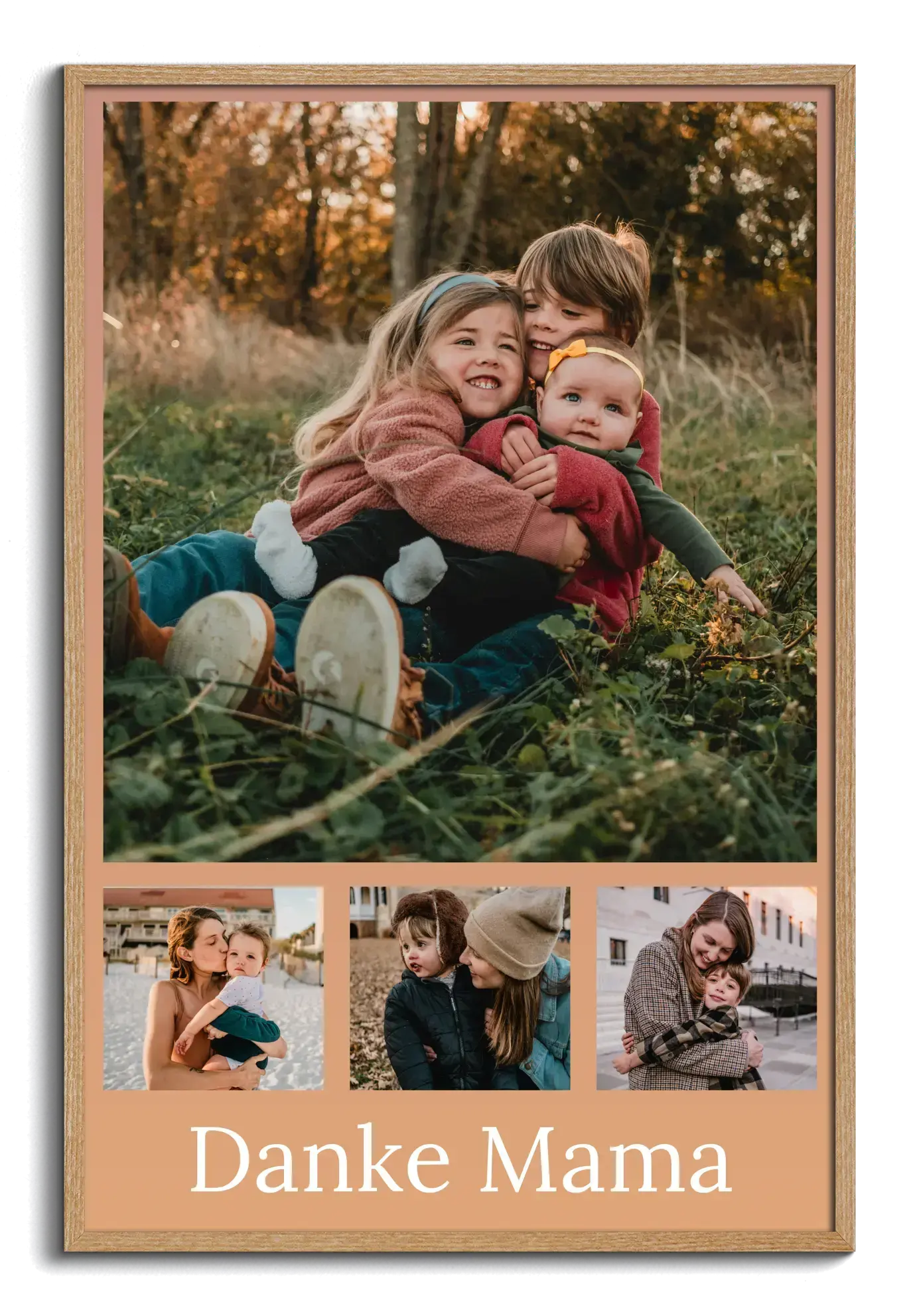 Jetzt personalisieren und bestellen. Erstelle einen liebevollen Kunstdruck zum Muttertag oder Vatertag: Wähle eine Vorlage, füge Fotos der Kinder und Enkel ein und ergänze einen Gruß wie Alles Liebe zum Muttertag oder Danke Mama. In mehreren Größen und Materialien sofort bestellbar – ideal als Geschenk.
