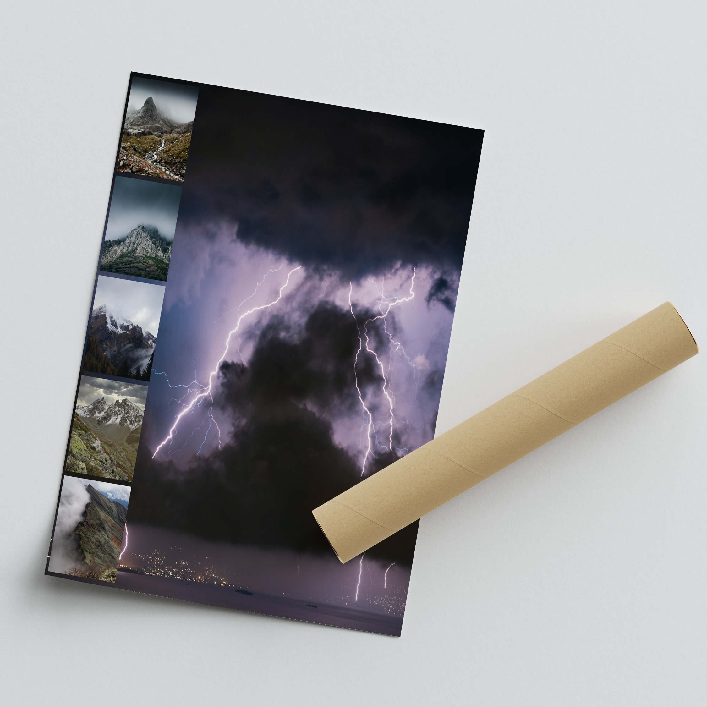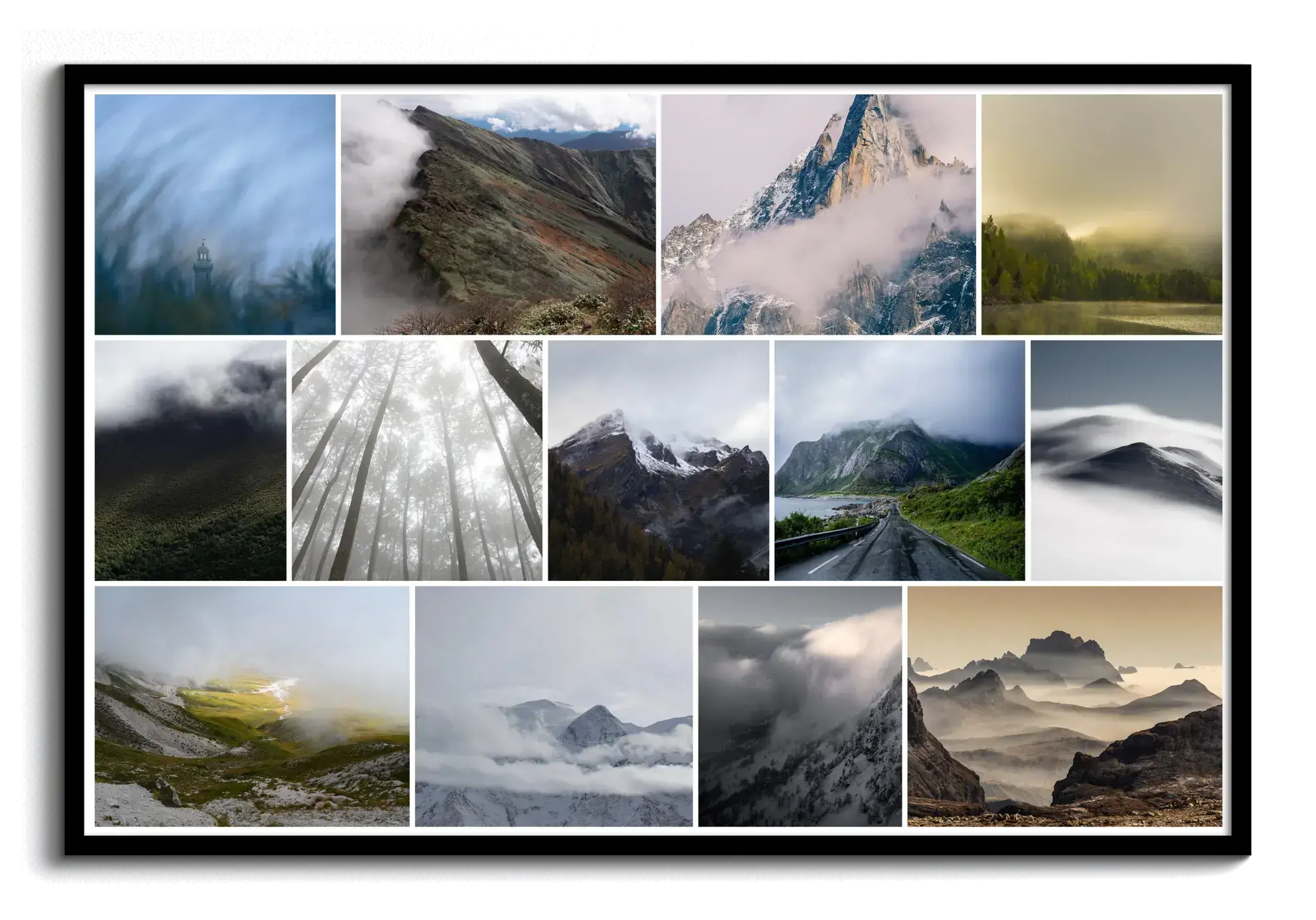 Nebel, Küste, Wälder, Berge und Gewitter: Wettermotive als Collage im Premiumdruck.