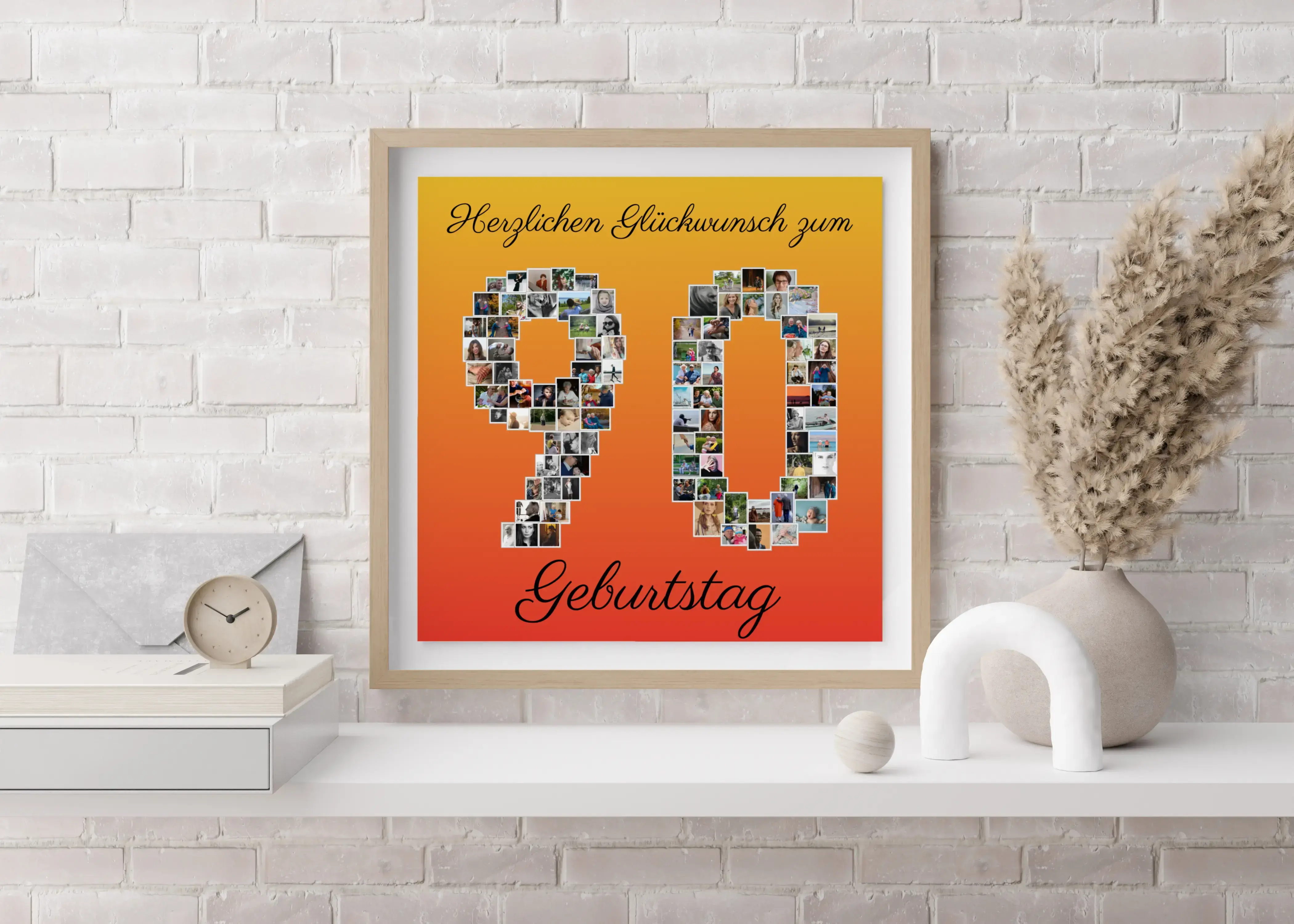 Fotocollage Zahl 90 erstellen - Perfektes Geschenk für neunzigsten Geburtstag oder Jubiläum