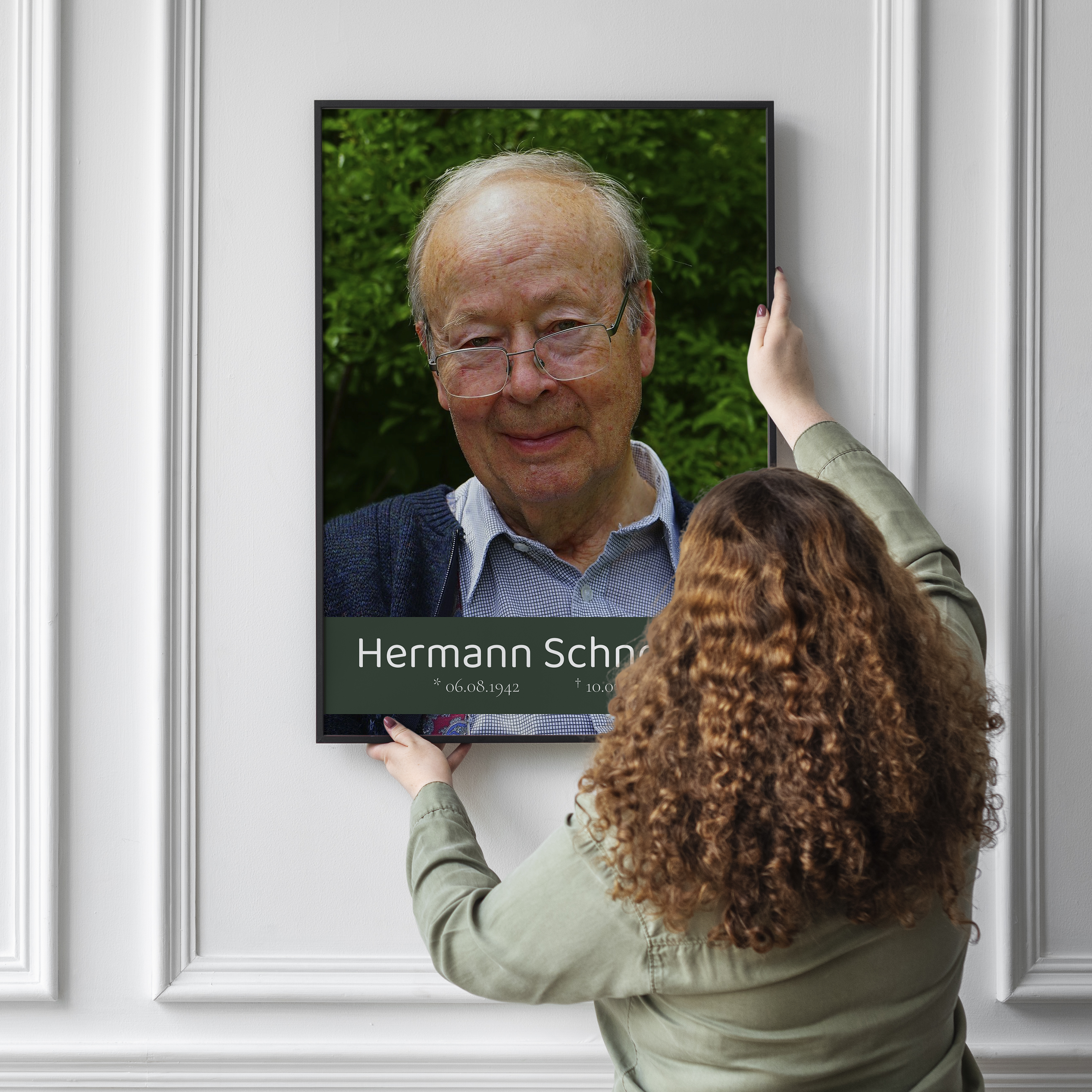 Unser Trauerfoto eignet sich als persönlicher Begleiter durch schwere Zeiten oder als Geschenk für Angehörige. Je nach Materialwahl kann es stilvoll gerahmt werden, an der Wand hängen oder auf dem Schreibtisch stehen. Es hilft dabei, besondere Erinnerungen zu bewahren und ist auch eine schöne Geschenkidee zum Gedenken an Jahrestage oder andere wichtige Termine. Mit Rapid-Collage kannst du deine Erinnerungen gebührend festhalten.