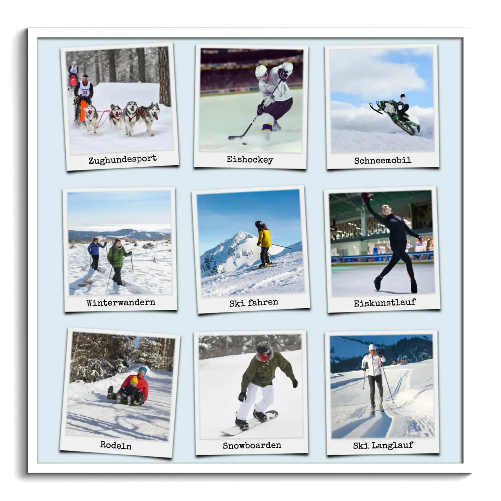 Erstelle deine persönliche Winter-Collage und halte die unvergesslichen Momente deines letzten Winterurlaubs fest. Ob Skifahren, Schneeballschlachten oder gemütliche Abende am Kamin – lass deine Lieblingsfotos von Landschaften und der Familie zu einer einzigartigen Erinnerung werden. Individuelle Texte wie "Unser Winterurlaub" geben deiner Collage den finalen persönlichen Touch.