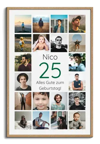Perfekt für 25 Jahre: als Geschenk zur Silberhochzeit, zum 25. Geburtstag, für 25 Jahre Betriebszugehörigkeit, Vereins- oder Firmengründung, für eine Freundschaftsjubiläums-Collage oder als Erinnerungswand im Büro. Mit persönlichen Fotos und Worten wird dein Anlass sichtbar und bleibt lange präsent.