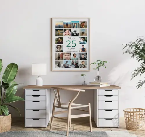 J'ai créé une collage de poster avec 100 photos pour le 50ème anniversaire de mon mari. C'était super facile et j'avais énormément de possibilités pour concevoir le poster. (Format, nombre d'images, disposition des images, taille, etc.) Le poster est vraiment réussi et a été livré rapidement. Absolument top !!