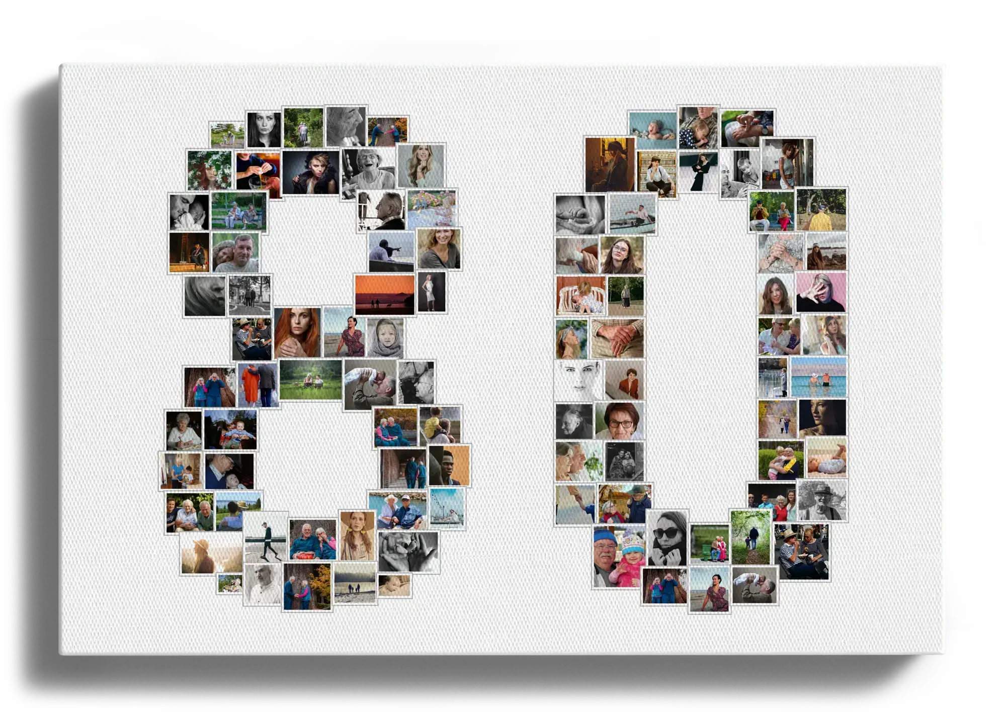 Célébrez 80 ans de souvenirs avec une mosaïque photo unique et personnalisée.