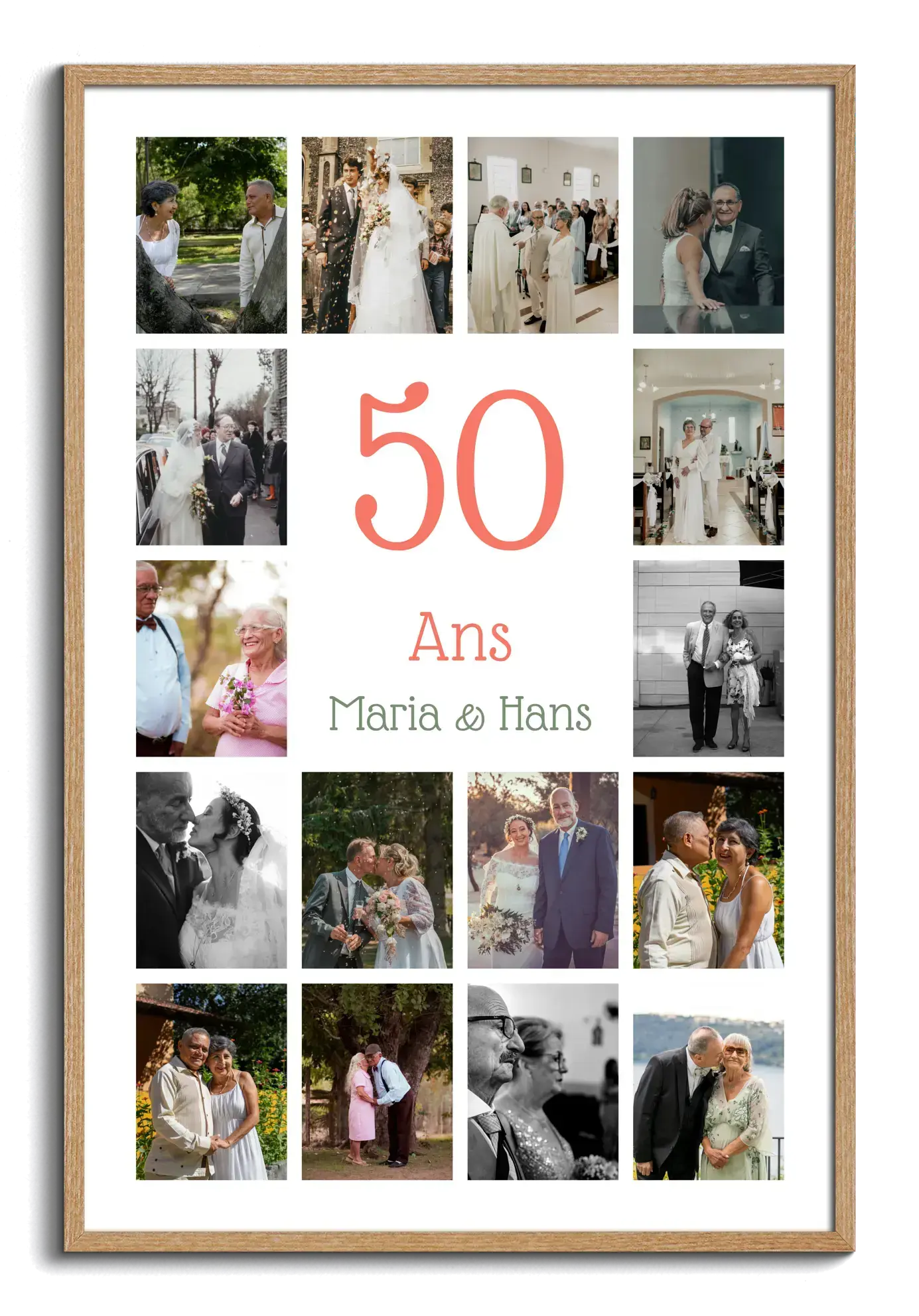 Collage de noces d’or avec grand chiffre central, noms et texte, 20–80 photos, personnalisable
