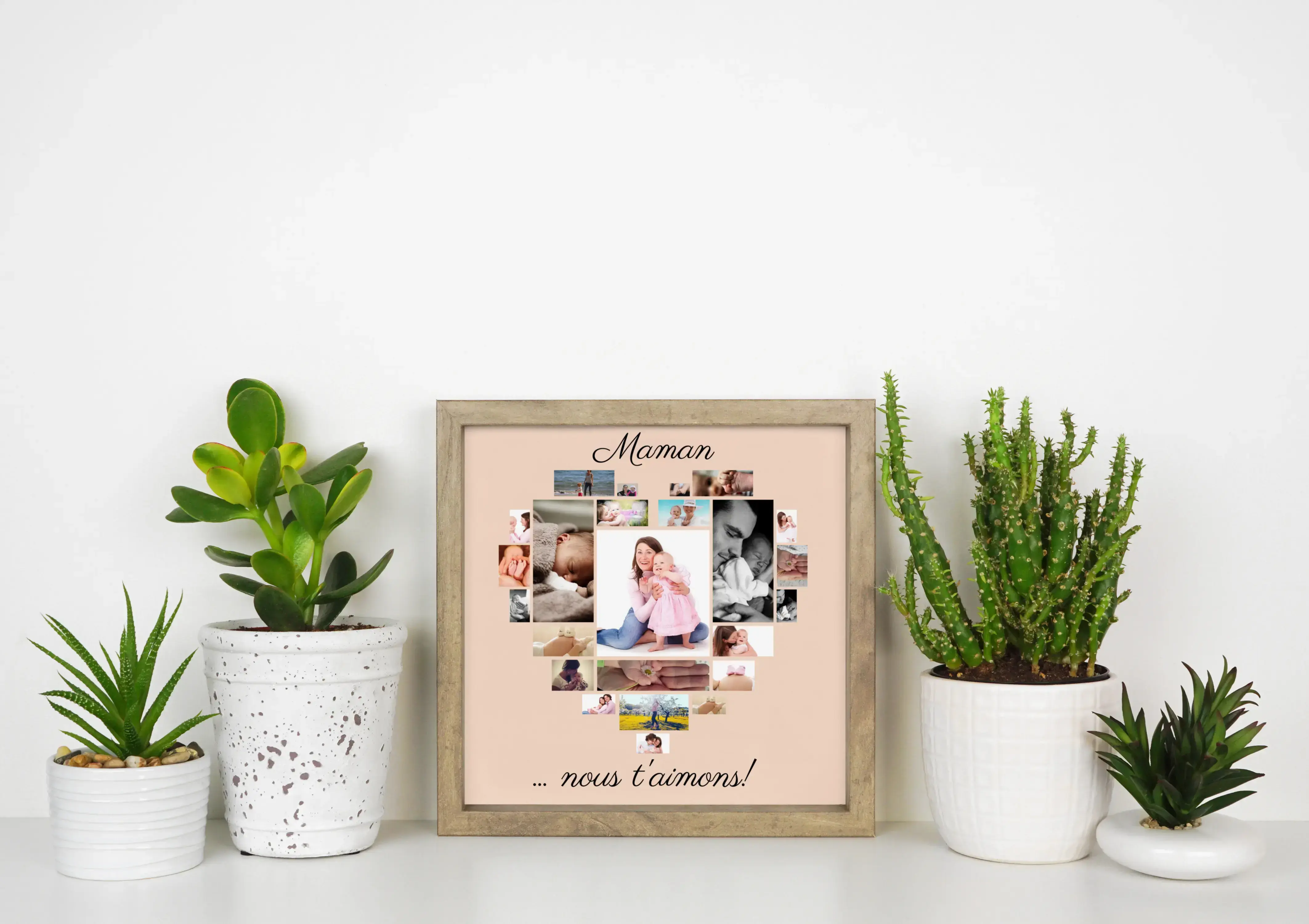 Collage photo cœur "Maman, on t'aime !" personnalisable pour cadeau fête des mères
