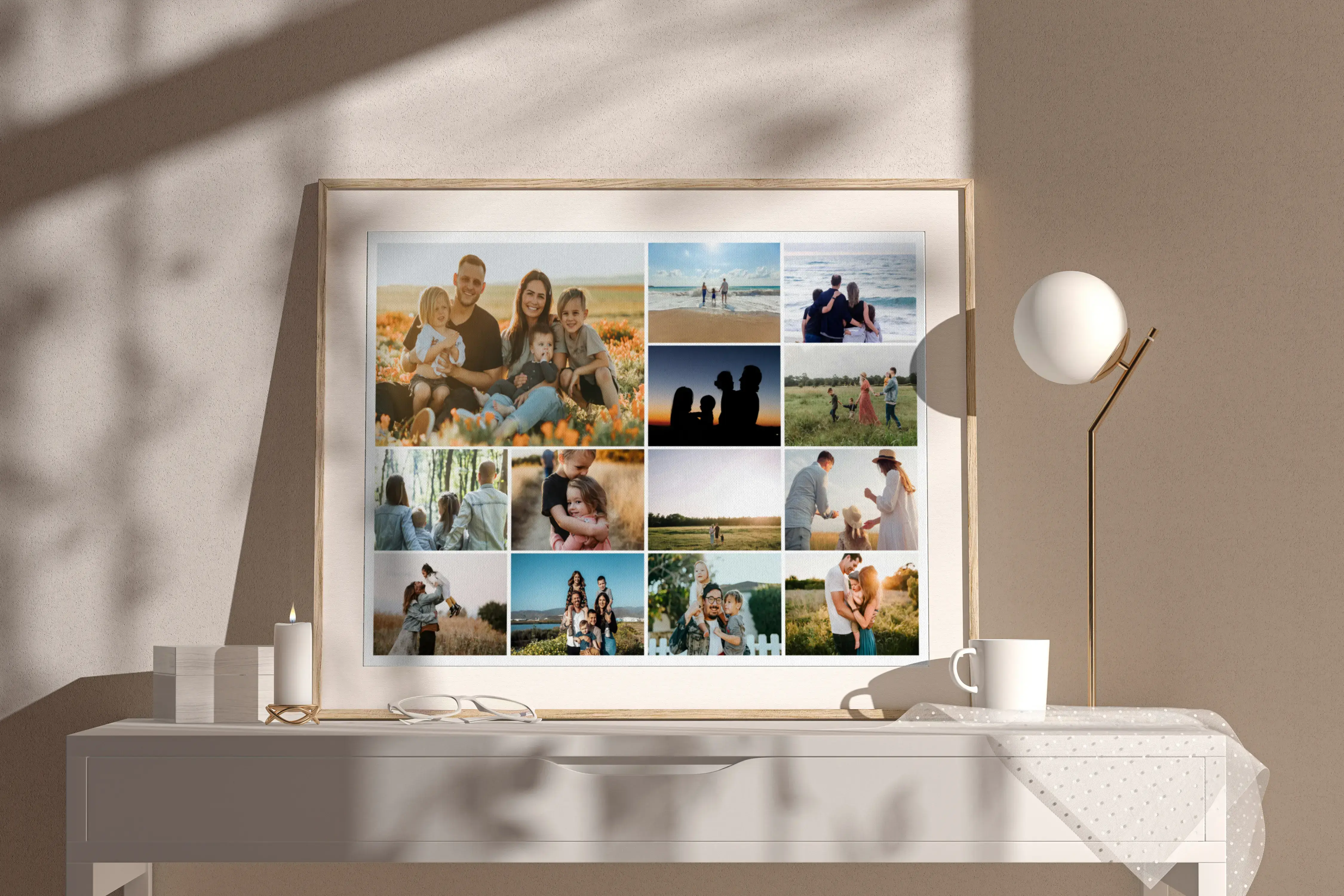 Impression Photocollage Affiche encadrée (bois, blanc) 50x70cm