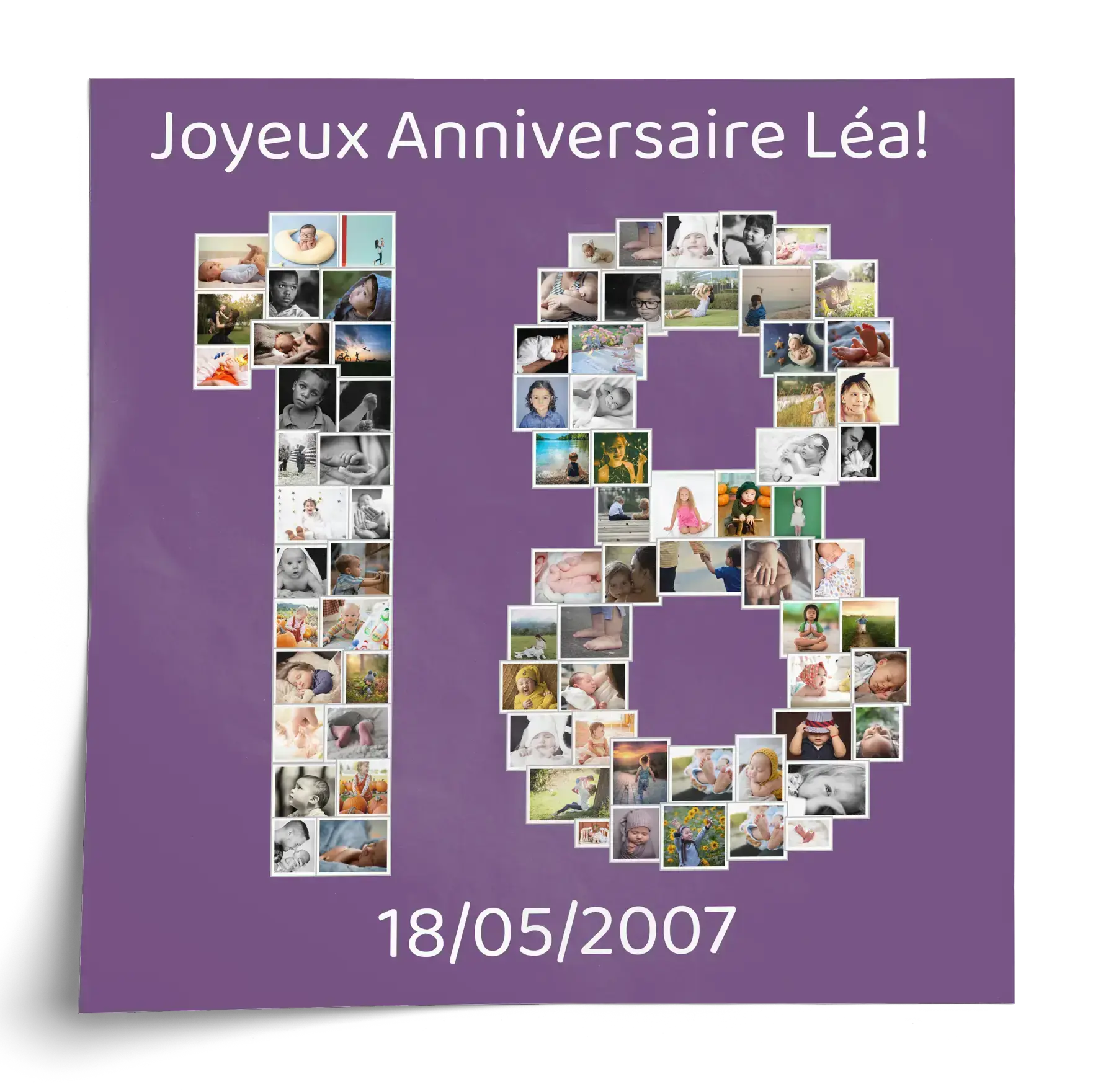 Collage "18" : célébrez la majorité avec style, jusqu'à 100 souvenirs en une œuvre unique.
