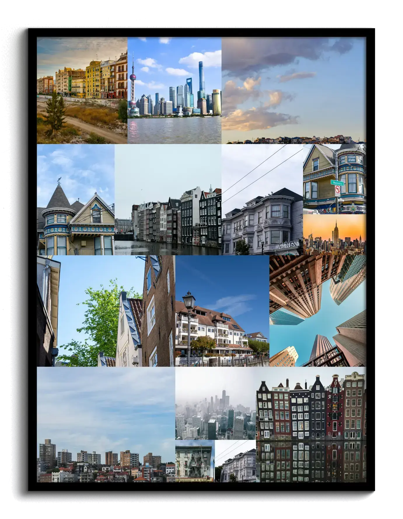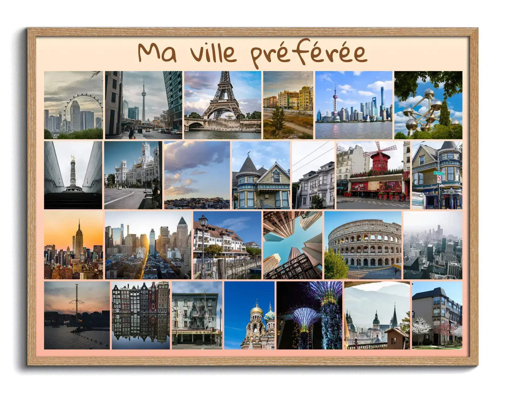 Créez votre tirage maintenant. Mettez en scène vos photos de vacances en un collage: villes emblématiques, ruelles, plages et monuments capturés aux quatre coins du monde, réunis en une création murale au choix (grille, cœur, texte, chiffres), avec un titre personnel comme Ma ville préférée ou Carnet de voyage 2025.