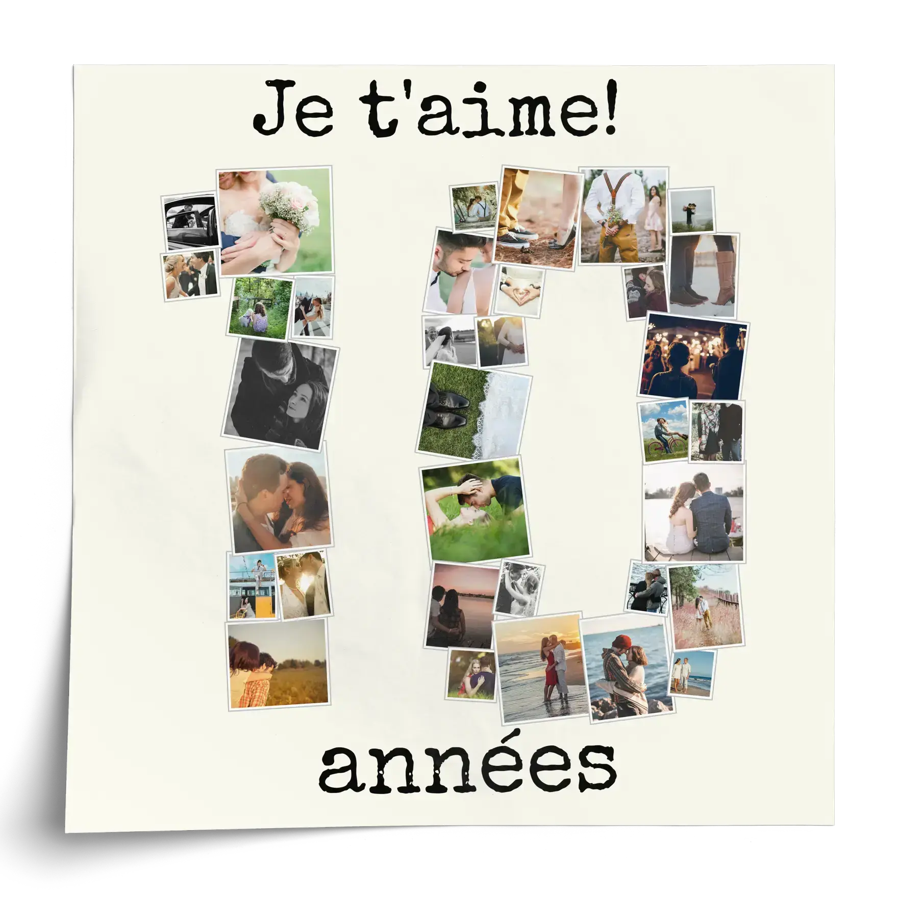 Créez votre propre chef-d'œuvre photographique avec notre produit de collage photo personnalisable. Imaginez une superbe affiche en forme de chiffre 10, composée de vos précieux souvenirs. Pour un anniversaire de mariage ou un jubilé d'entreprise, ce collage unique peut intégrer entre 1 et 100 photos selon la variante choisie. Transformez vos moments spéciaux en une œuvre d'art inoubliable, idéale pour un cadeau marquant.