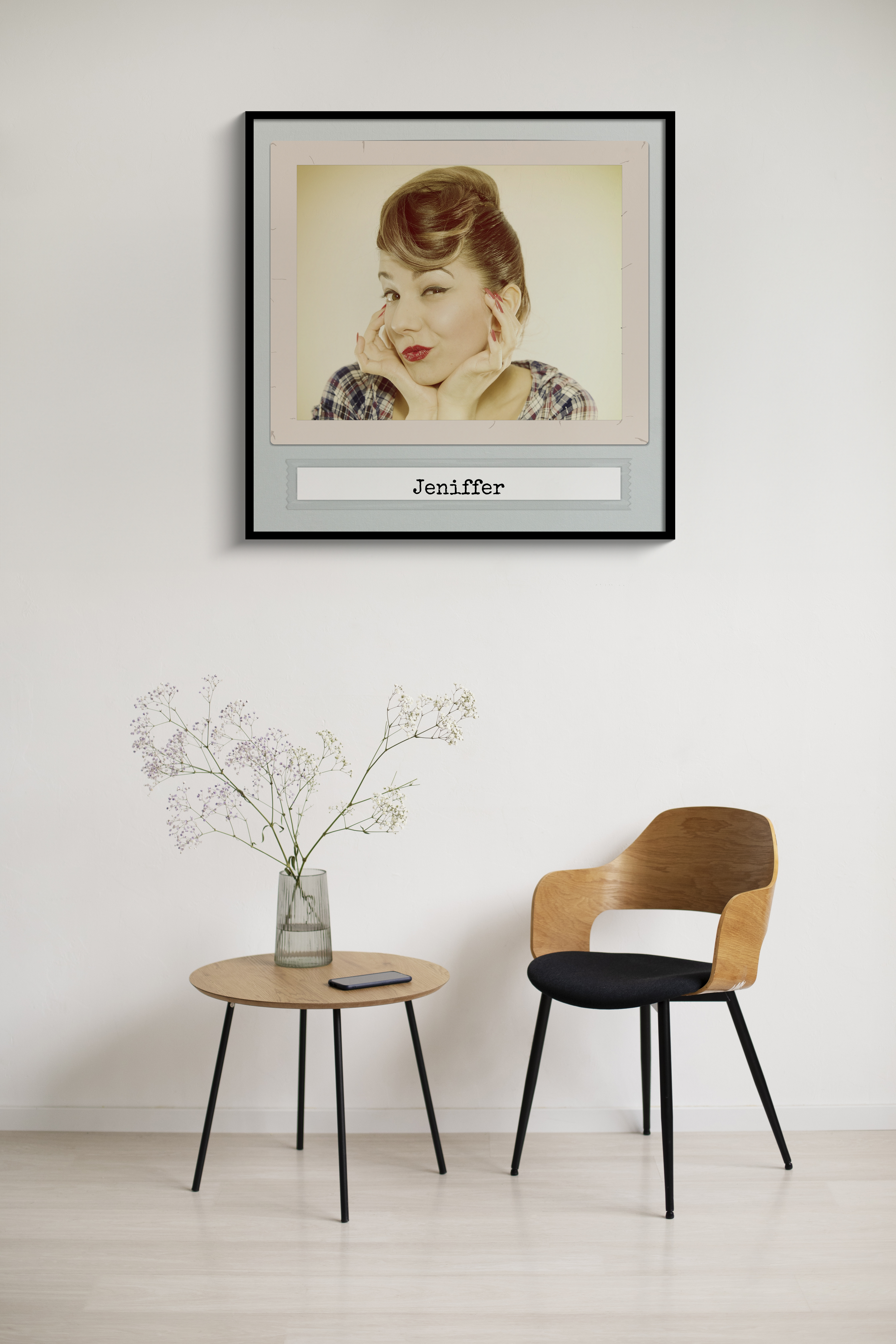 Photo vintage personnalisé: portrait élégant, nom inclus. Cadeau unique ou décoration murale chic.