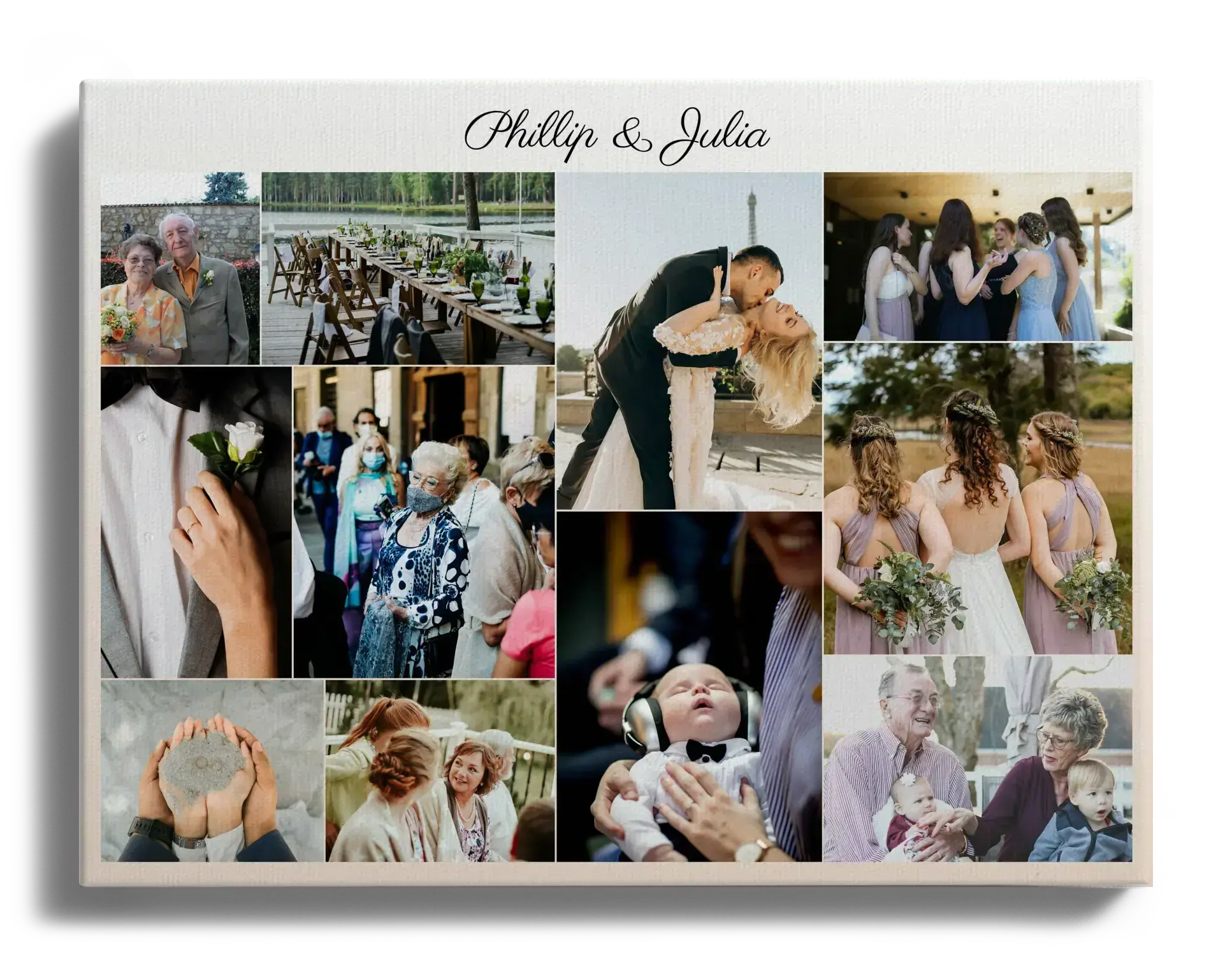 Collage de Mariage Personnalisée sur Toile - Cadeau Idéal pour les Nouveaux Mariés