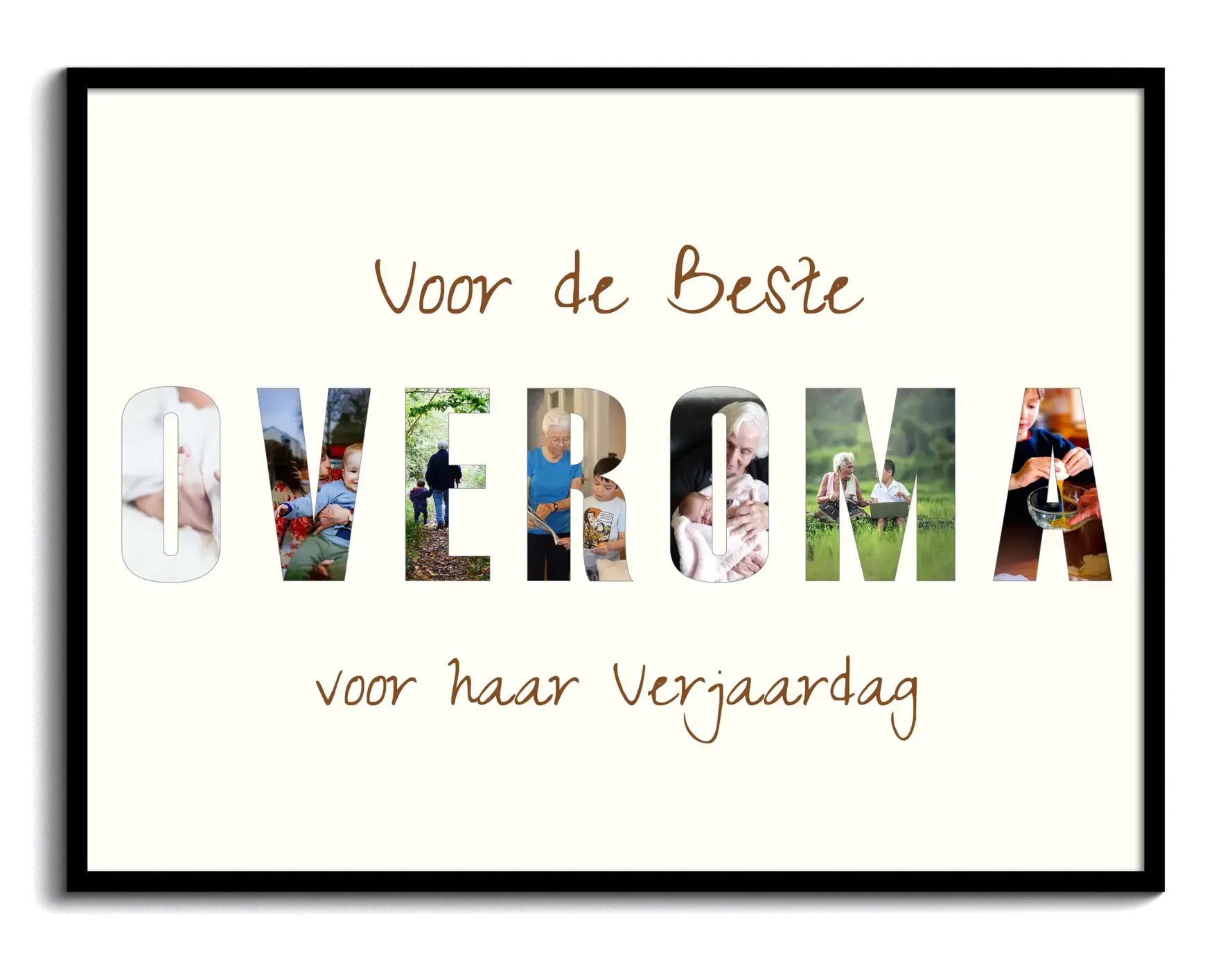 Lettercollage OVERGROOTOMA – Ontwerp jouw verjaardagscadeau met 5 foto’s