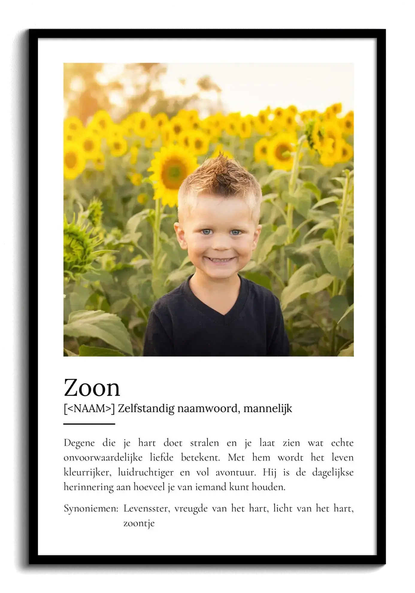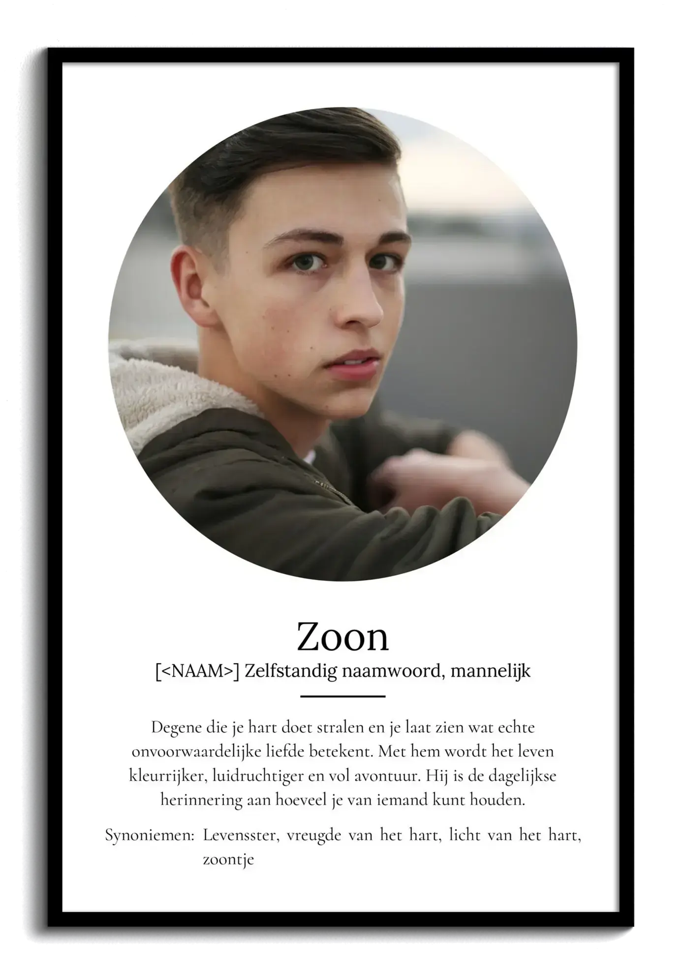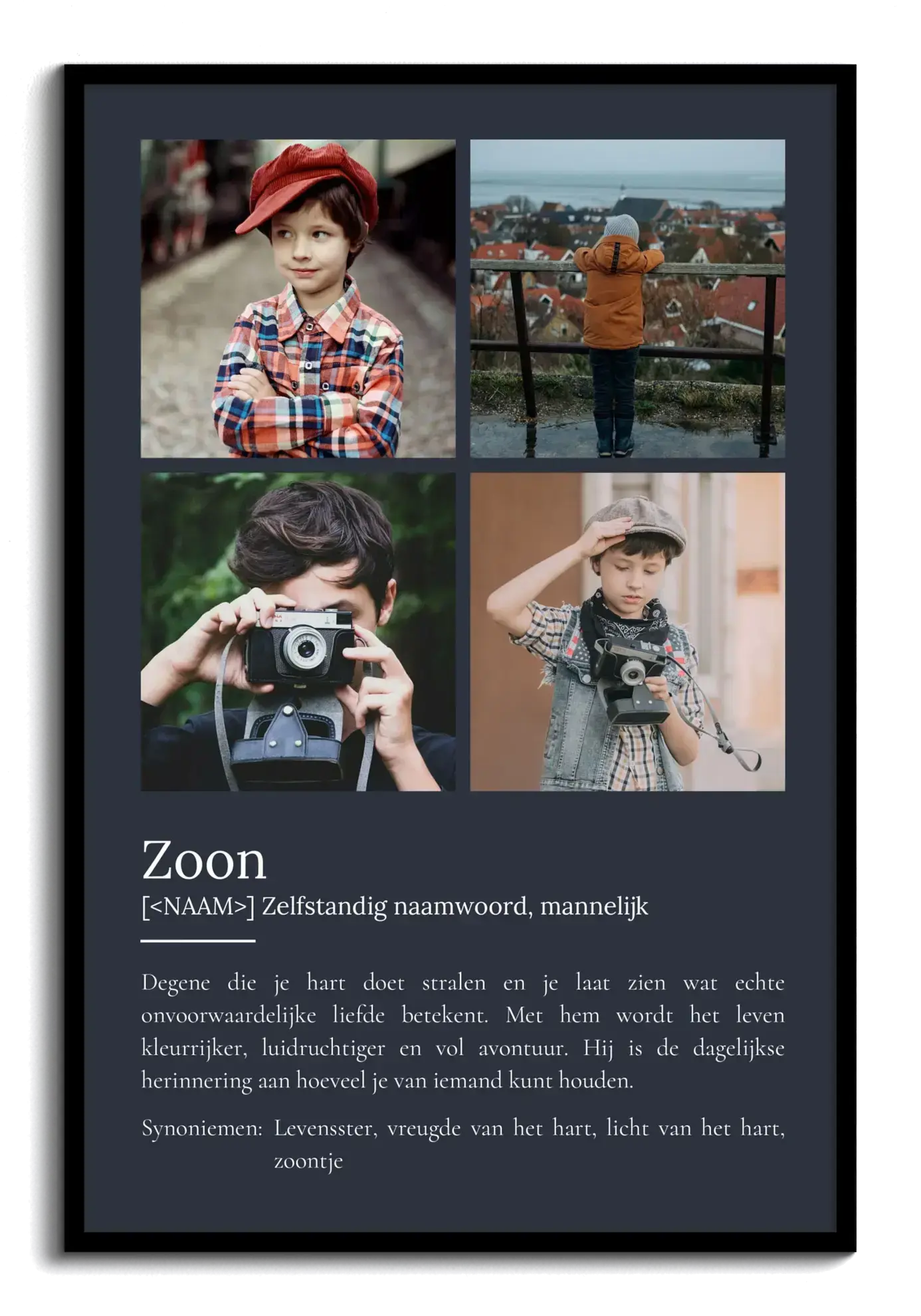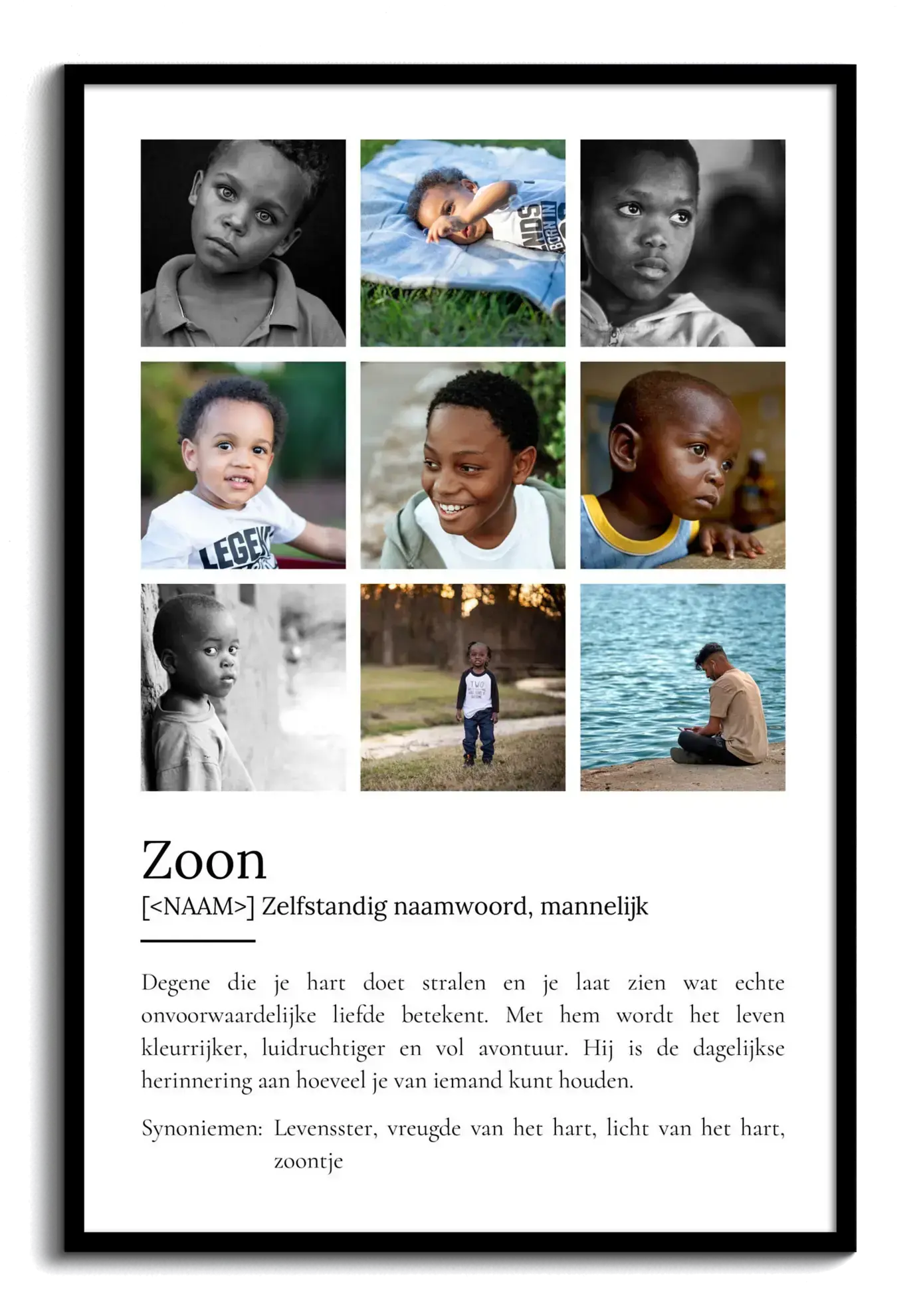 Definieer 'Zoon': Geef liefde een gezicht met gepersonaliseerde fotocollage en hartverwarmende boodschap.