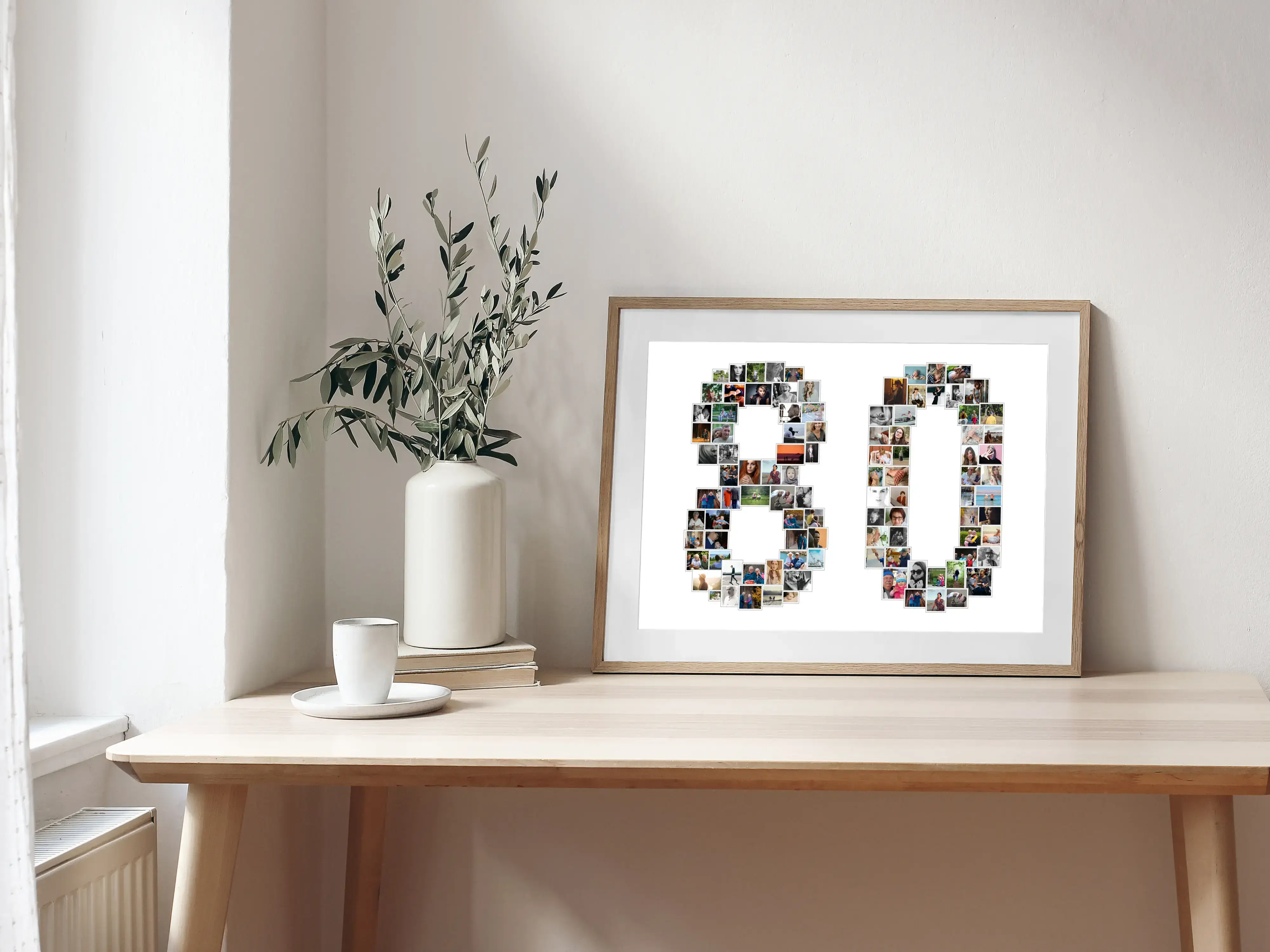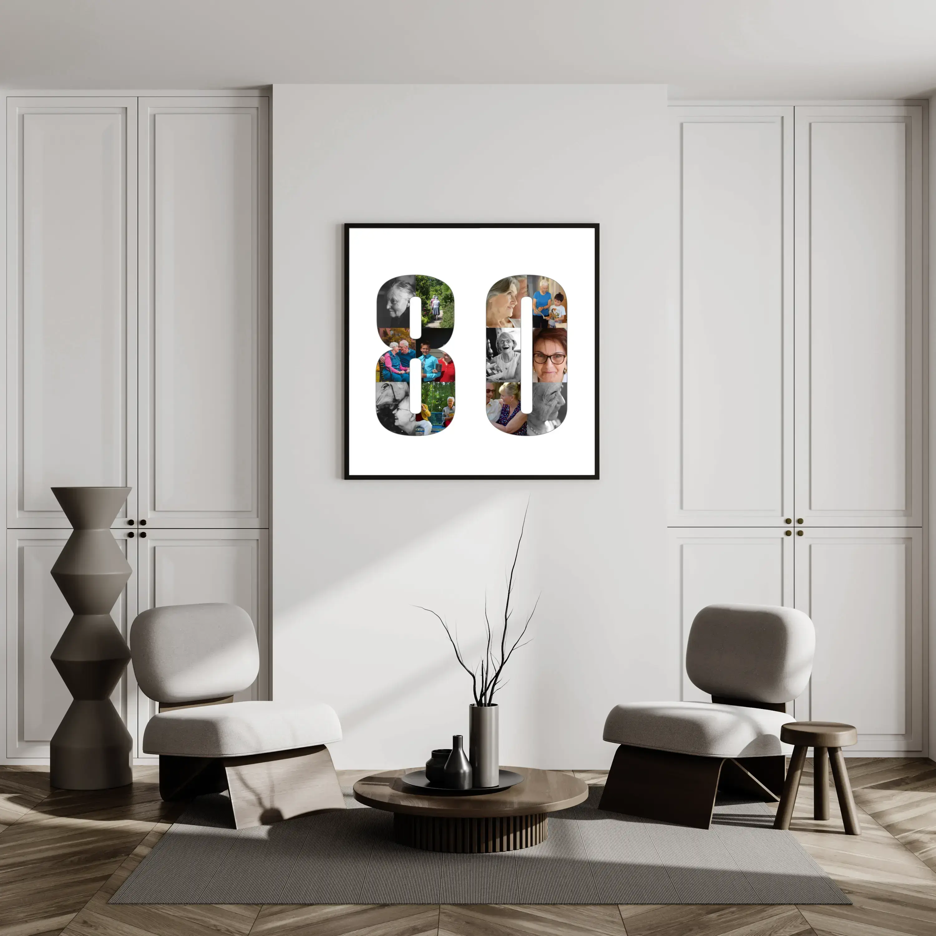 Creëer je eigen fotocollage '80' als uniek cadeau voor een 80e verjaardag!