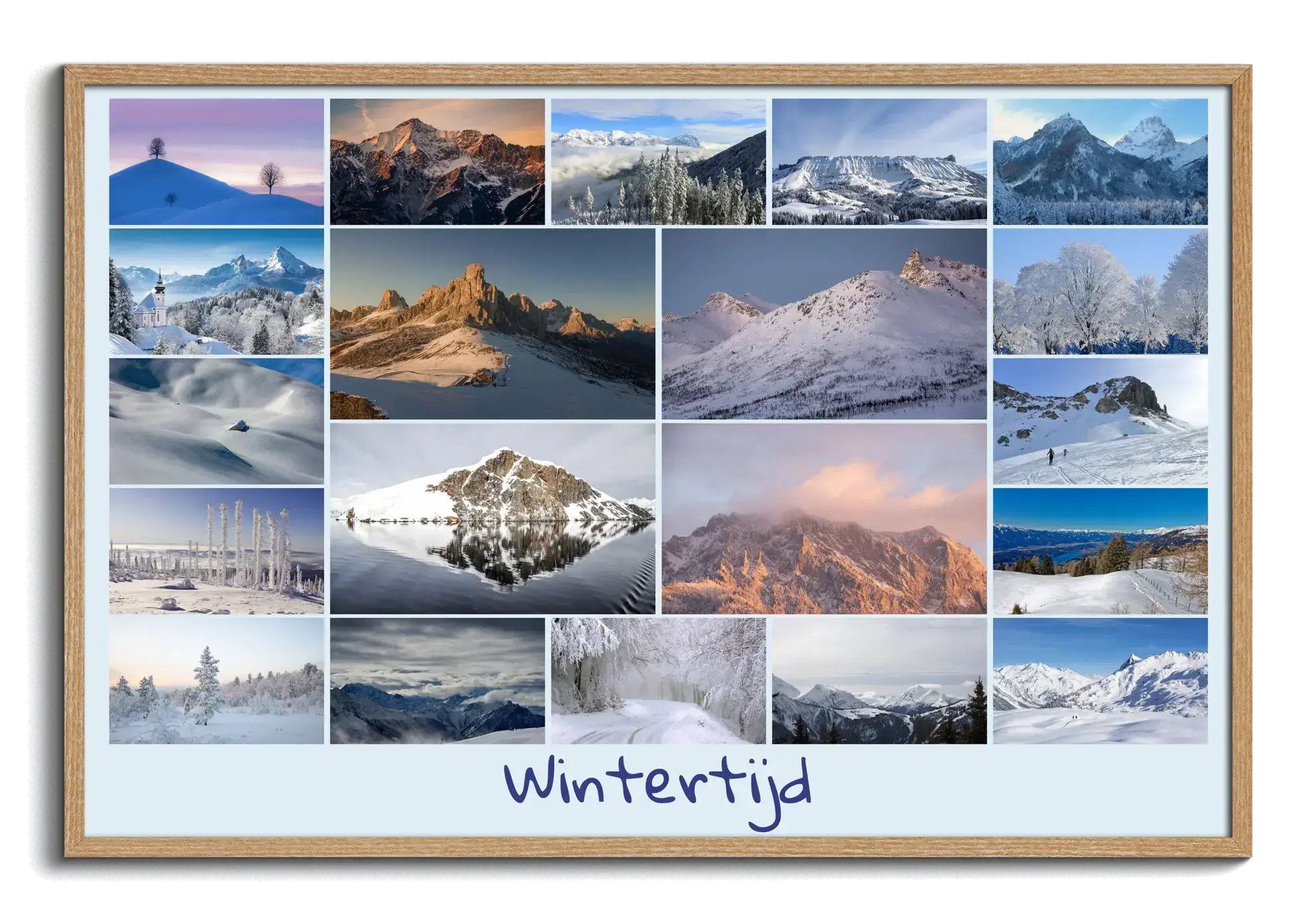 Start nu en maak je eigen natuur-collage. Leg landschappen vast in één ontwerp: bossen in lente, zomer, herfst en winter, lanen en wegen vol herfstbladeren, zomerse weiden in bloei, markante bergketens met besneeuwde toppen en stille winterlandschappen. Perfect voor een rustgevende wand met echte natuurkleuren en premium druk.