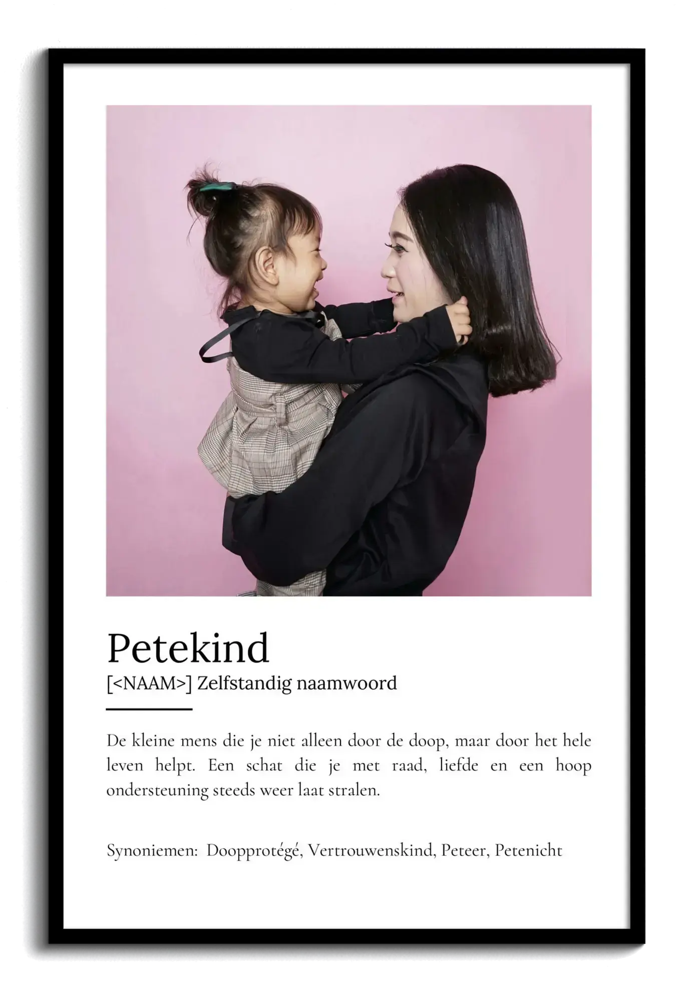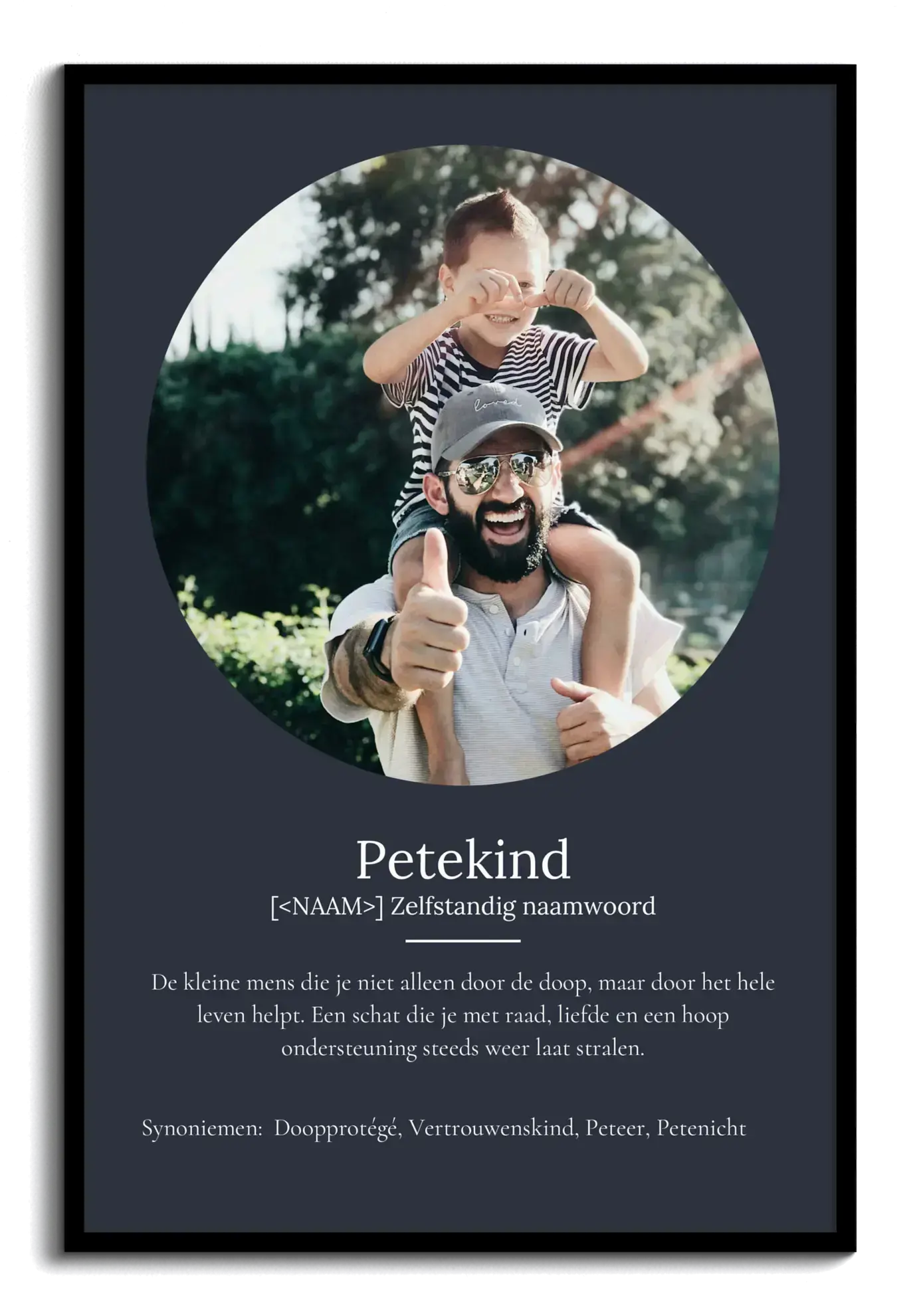 Persoonlijk cadeau voor het petekind: een poster met foto en lieve definitie in Duden-stijl.