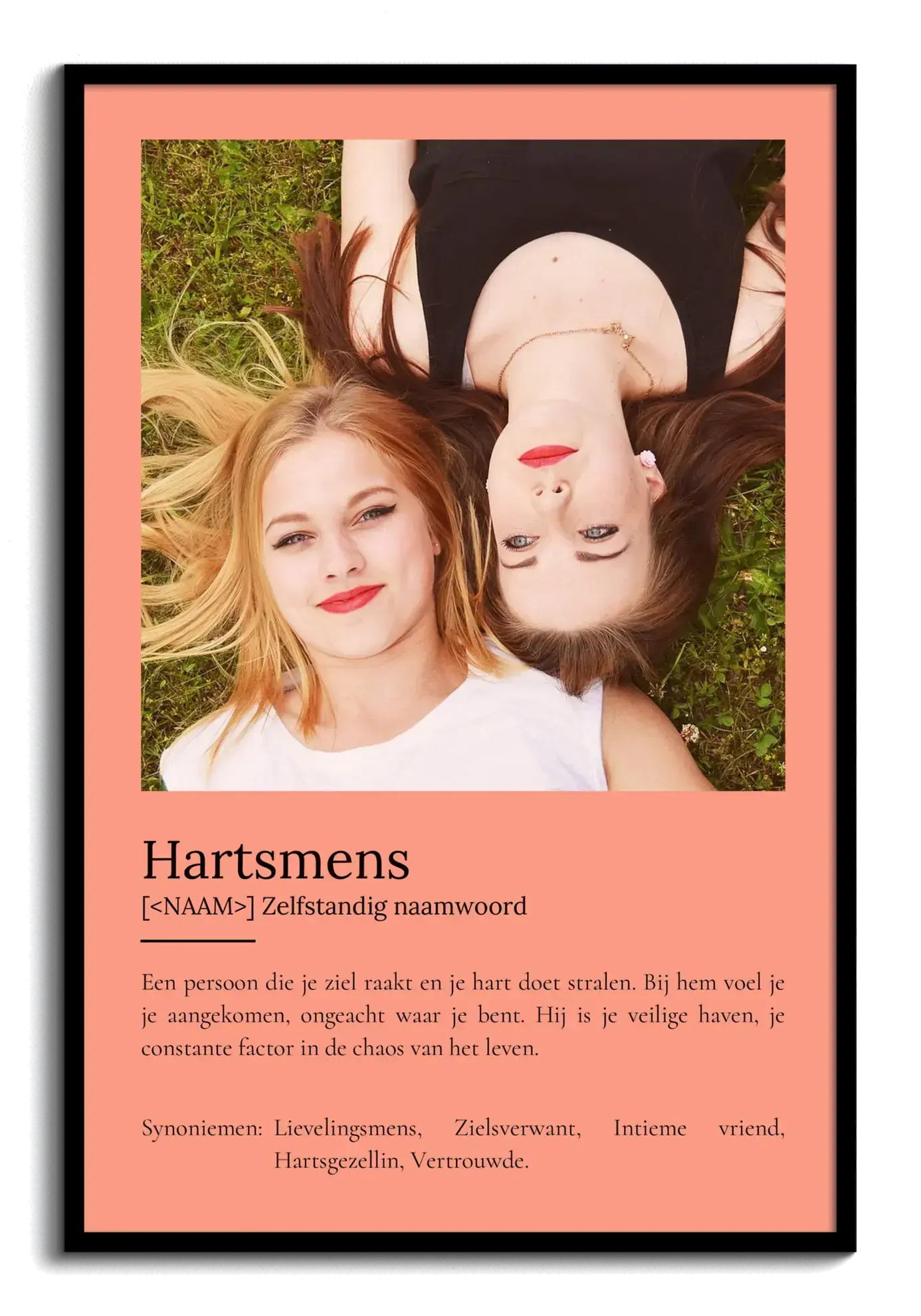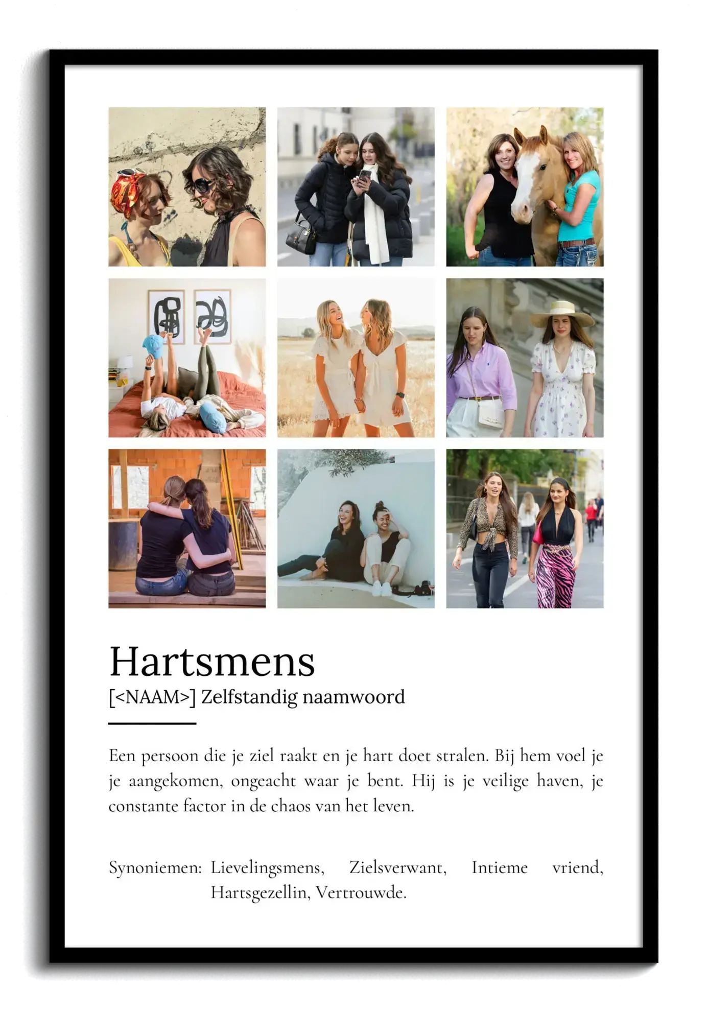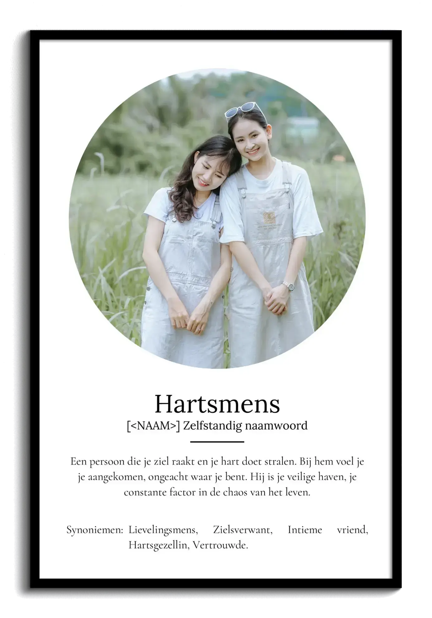 Personaliseerbaar Definitionsposter voor je 'Herzensmensch', met foto en hartverwarmende tekst.