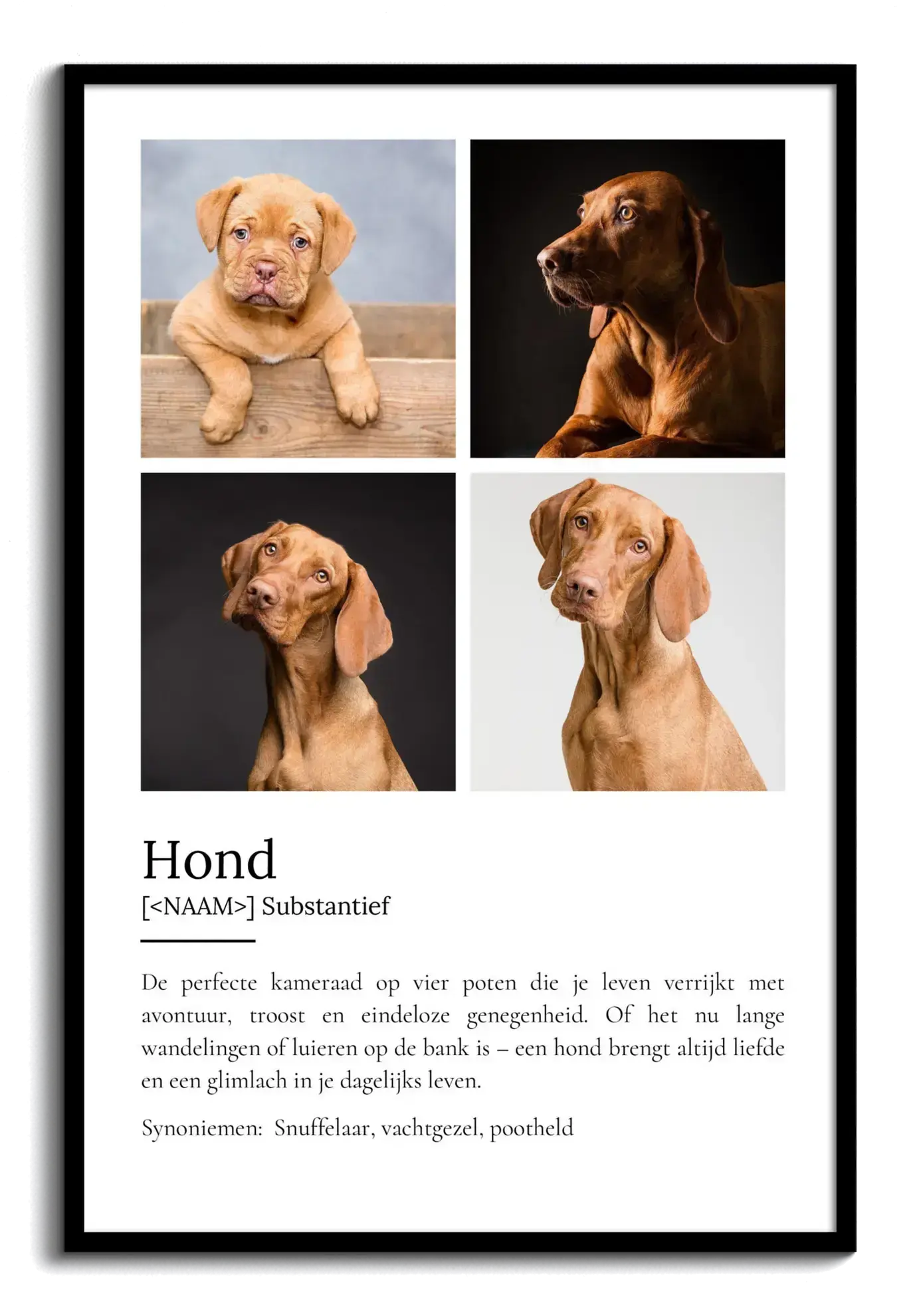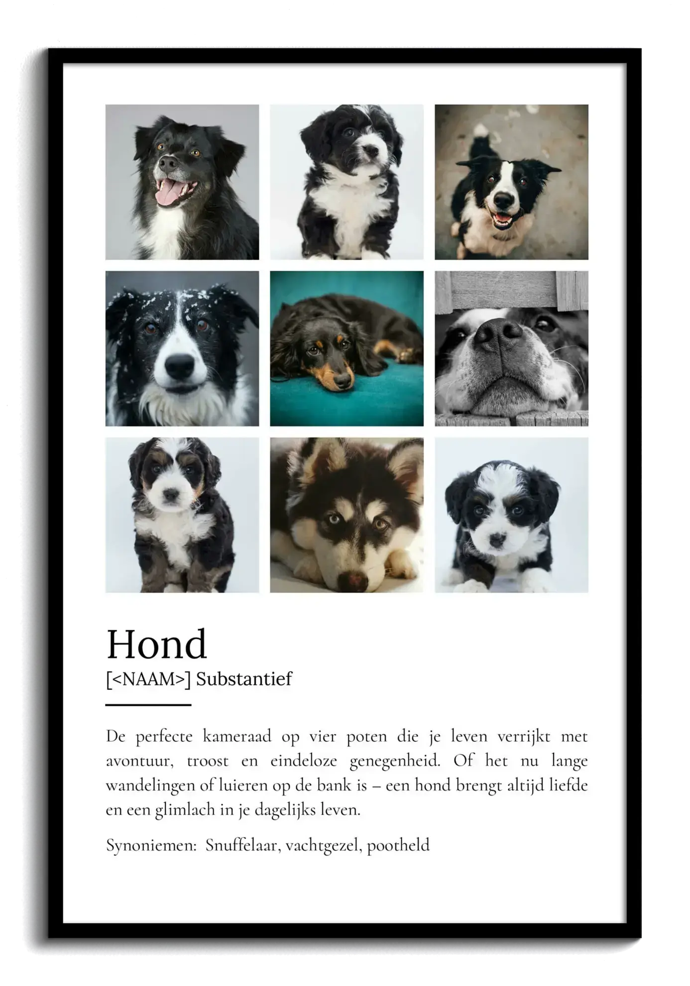 Persoonlijk poster voor hondenliefhebbers: Creëer unieke definities met foto's en eigen tekst.