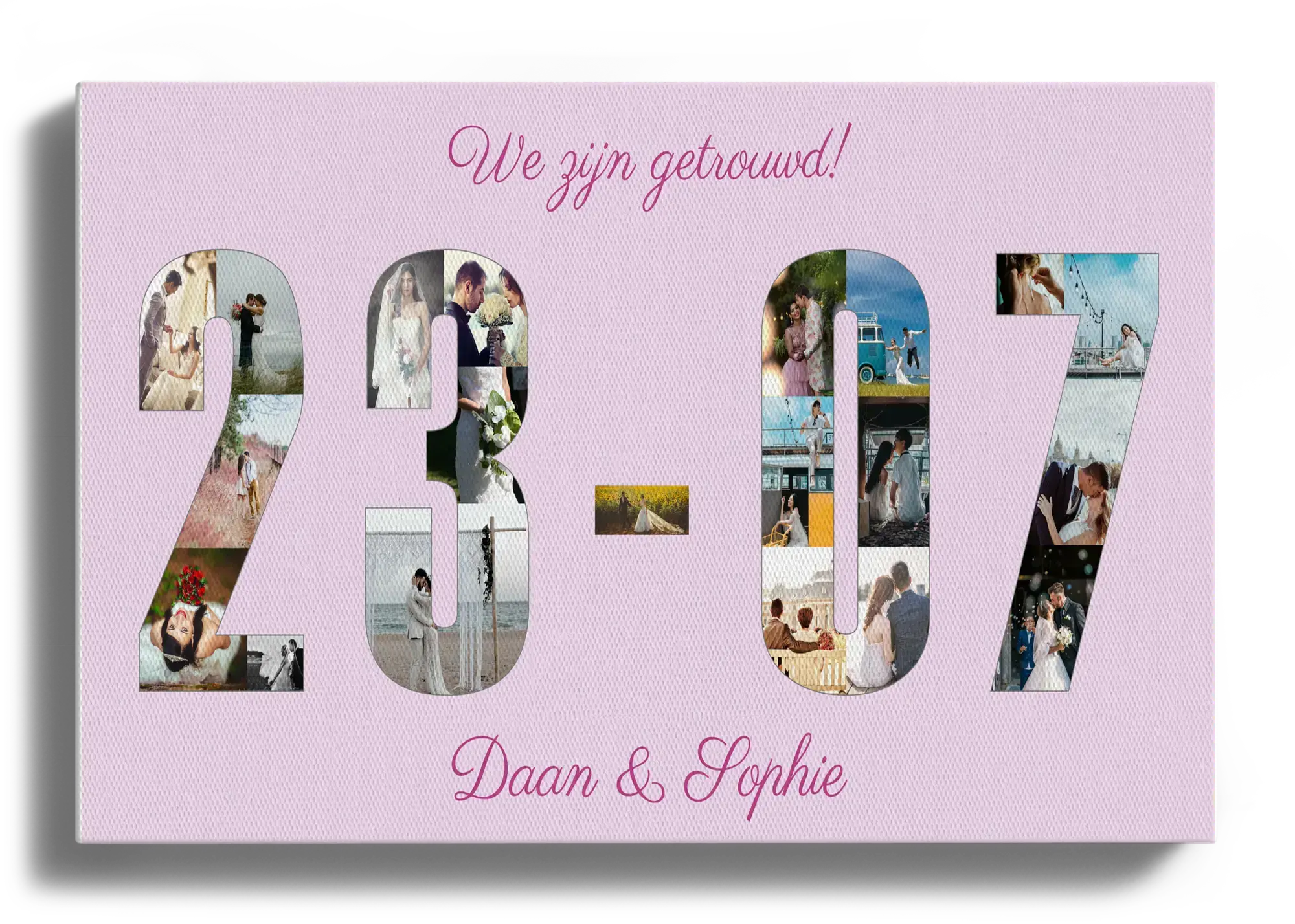Trouwdatum fotocollage canvas - personaliseer met jullie foto's & namen