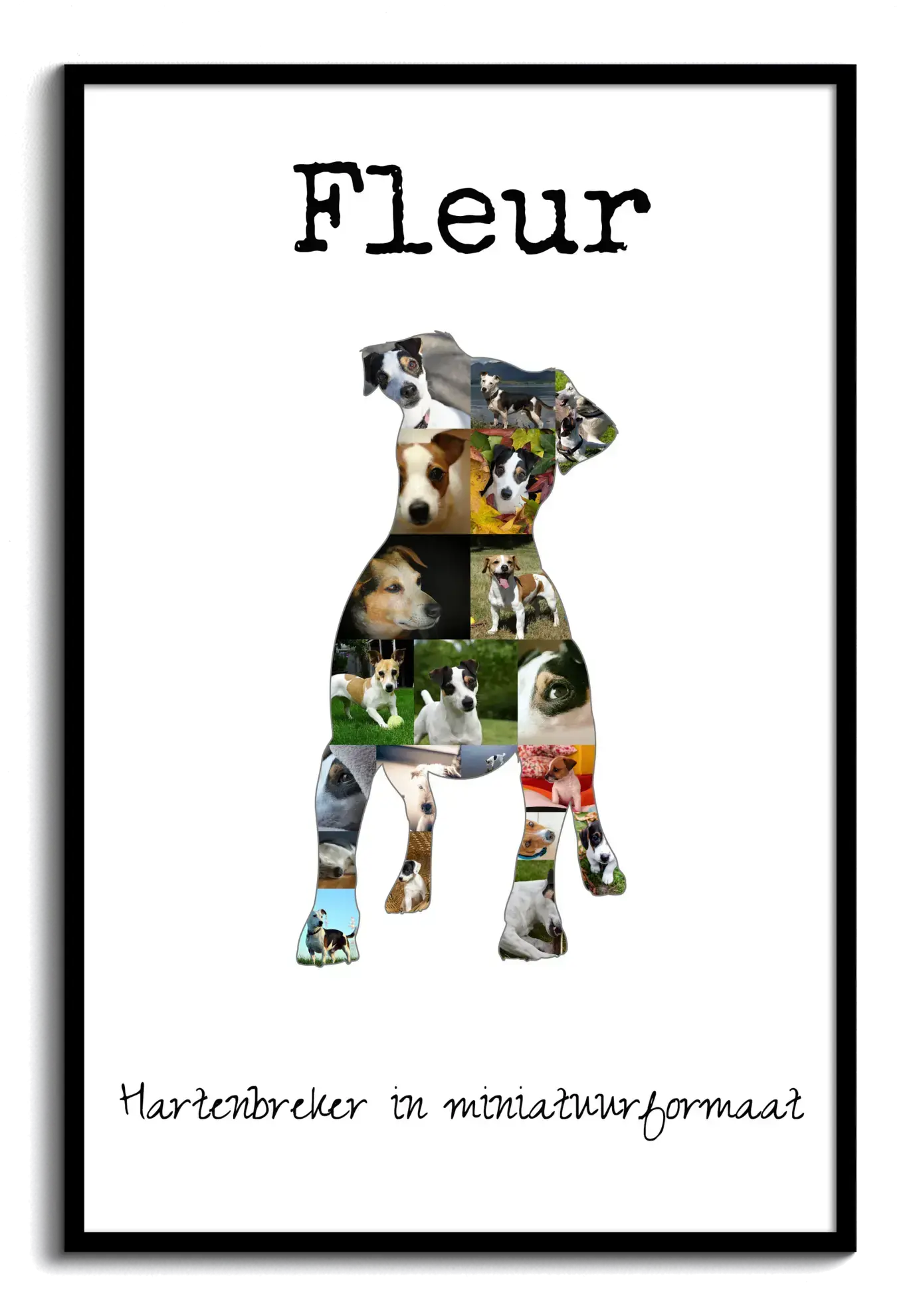 Een creatieve Jack Russell collage voor hondenliefhebbers met persoonlijke foto's en tekst.
