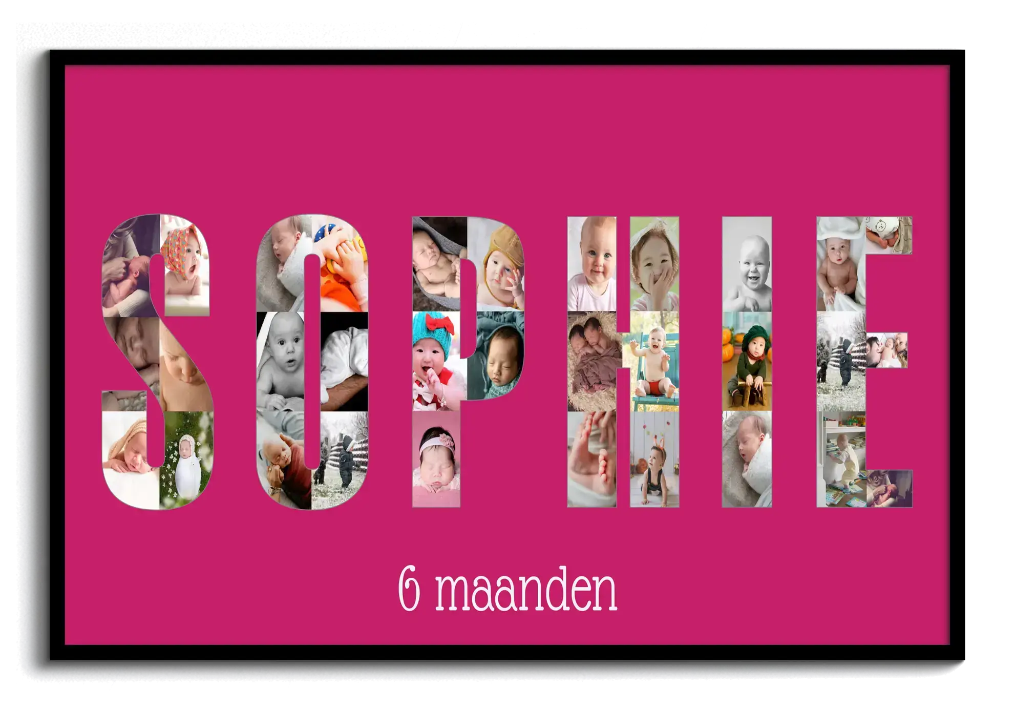 Maak je eigen naam fotocollage voor baby's, gepersonaliseerd als uniek cadeau