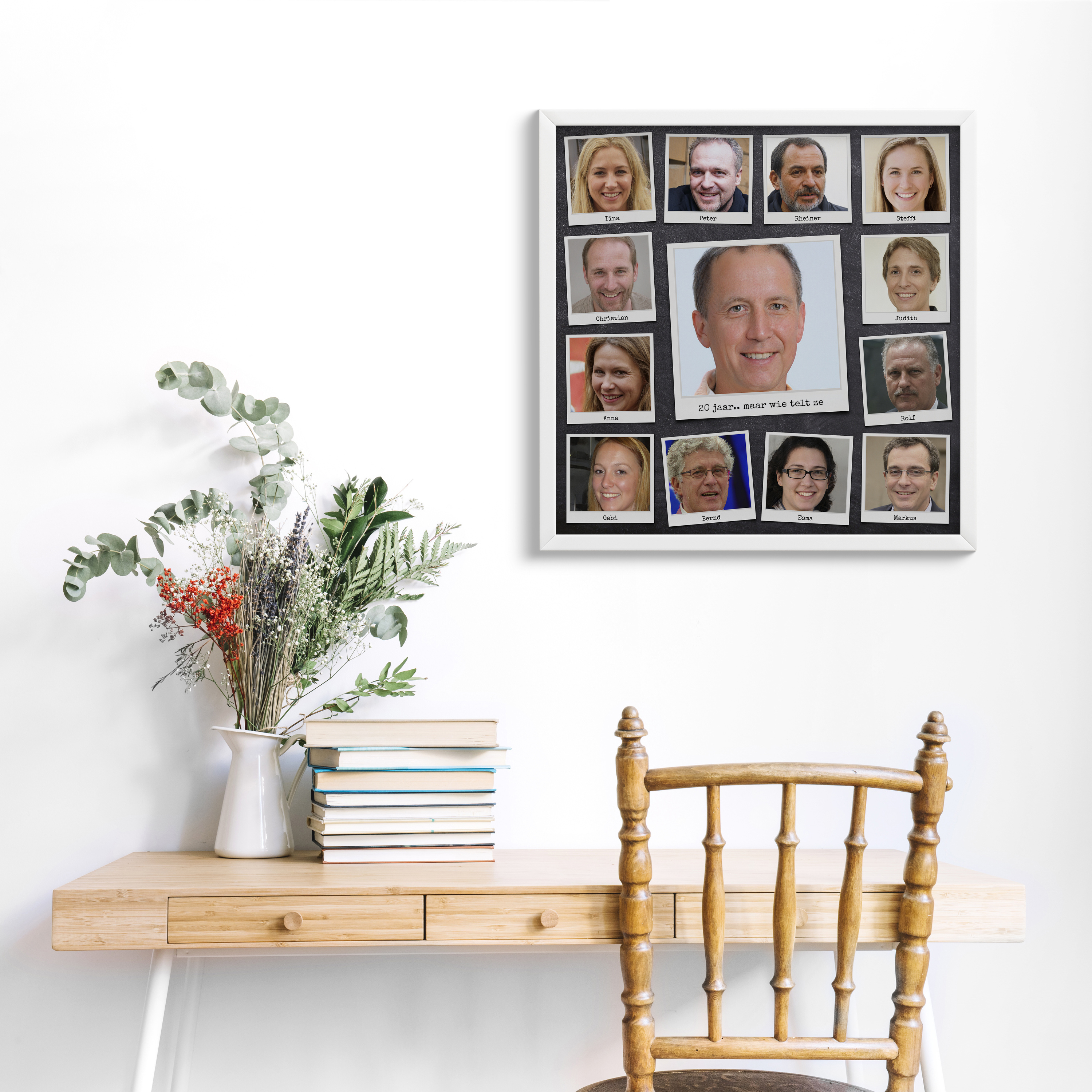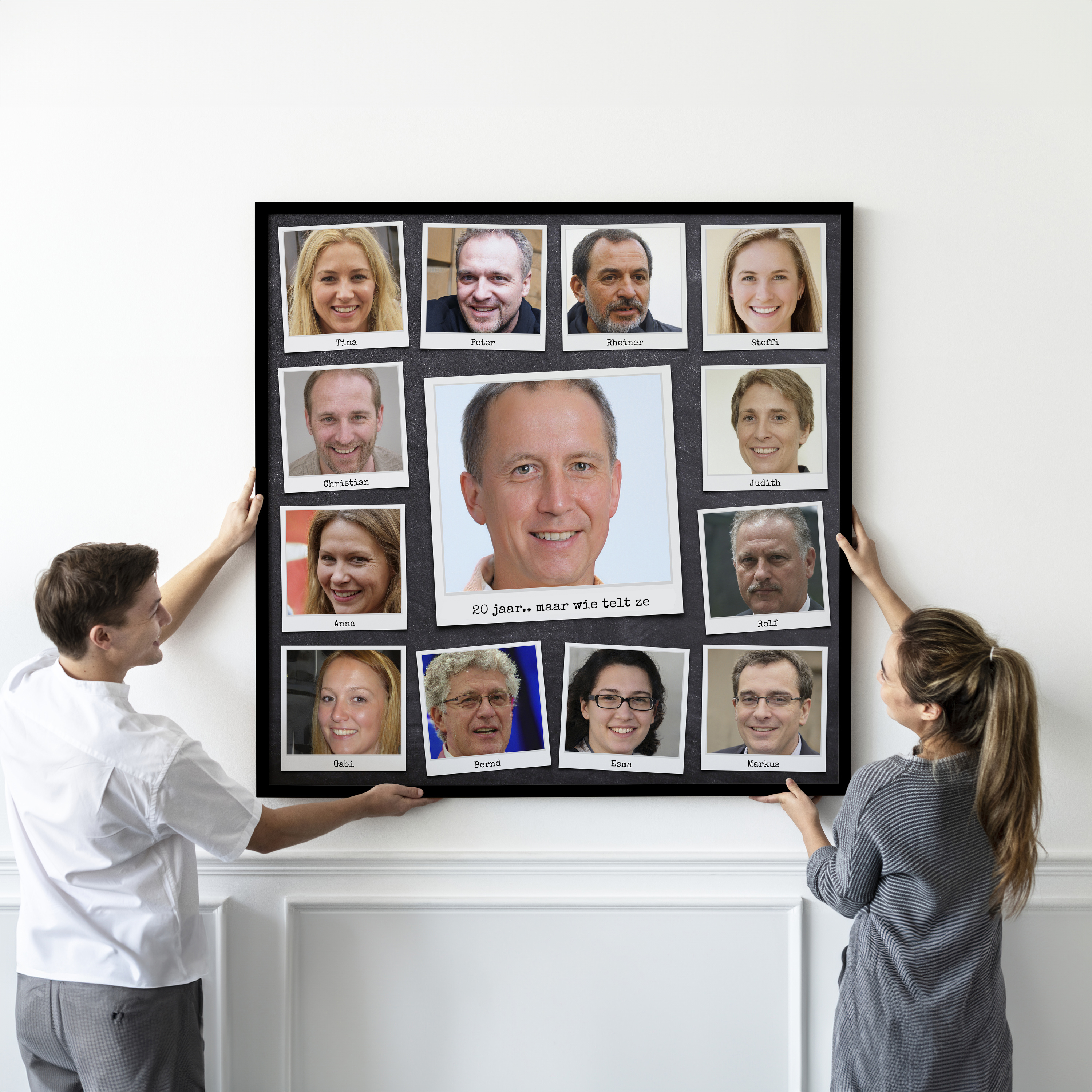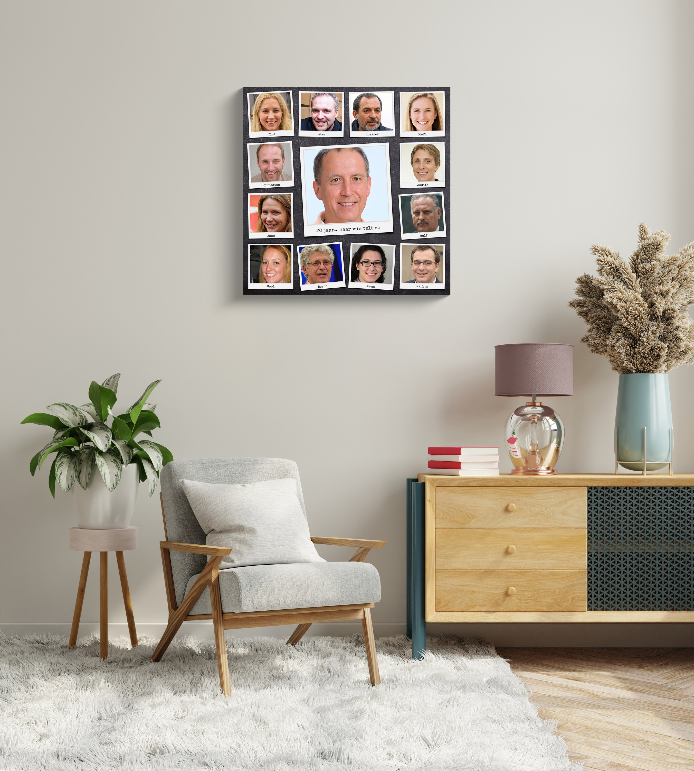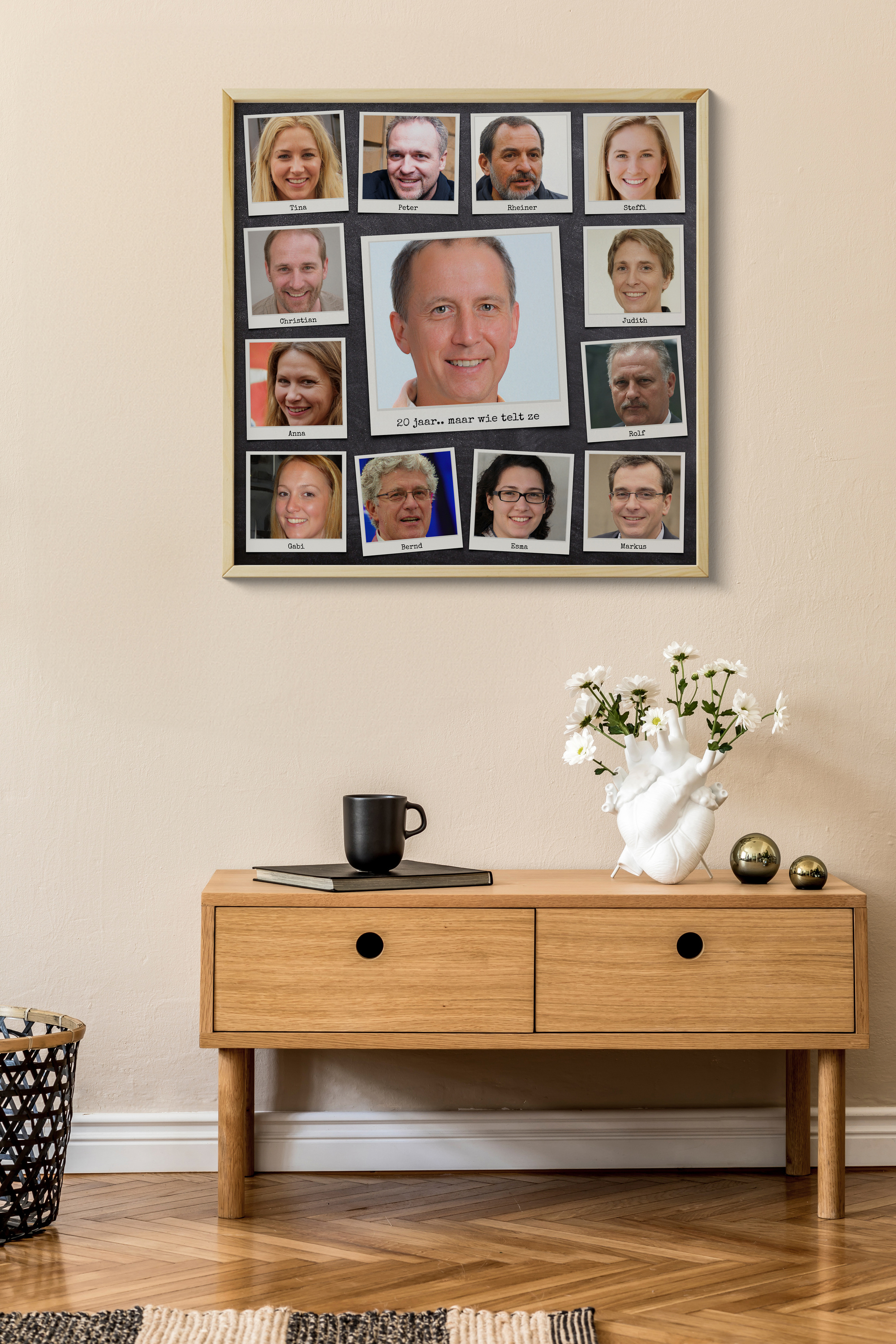 Fotocollage in Polaroid-stijl als persoonlijk afscheidscadeau voor pensioen of jubileum.