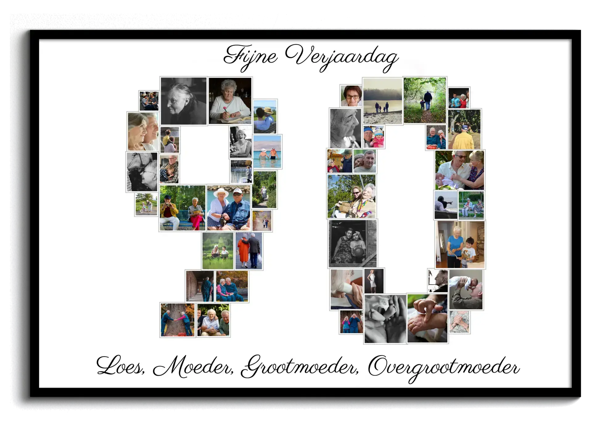 Creëer je eigen collage voor een 90e verjaardag met foto's! Bestel nu!
