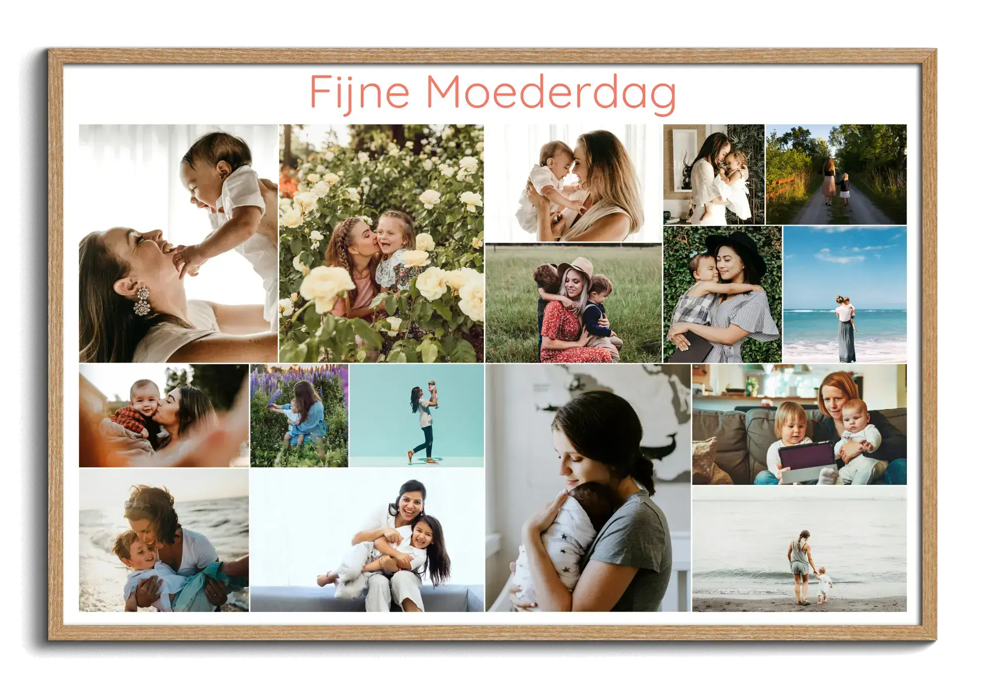 Ontdek de magie van persoonlijke herinneringen met onze fotocollage. Stel je eigen collage samen uit foto's van jou en je kinderen, speciaal voor Moederdag. Voeg een persoonlijke touch toe met teksten zoals "Alles Liefde voor Moederdag" of "Dank je, Mama". Maak het vandaag nog en laat je kinderlach stralen aan de muur in jouw huis.