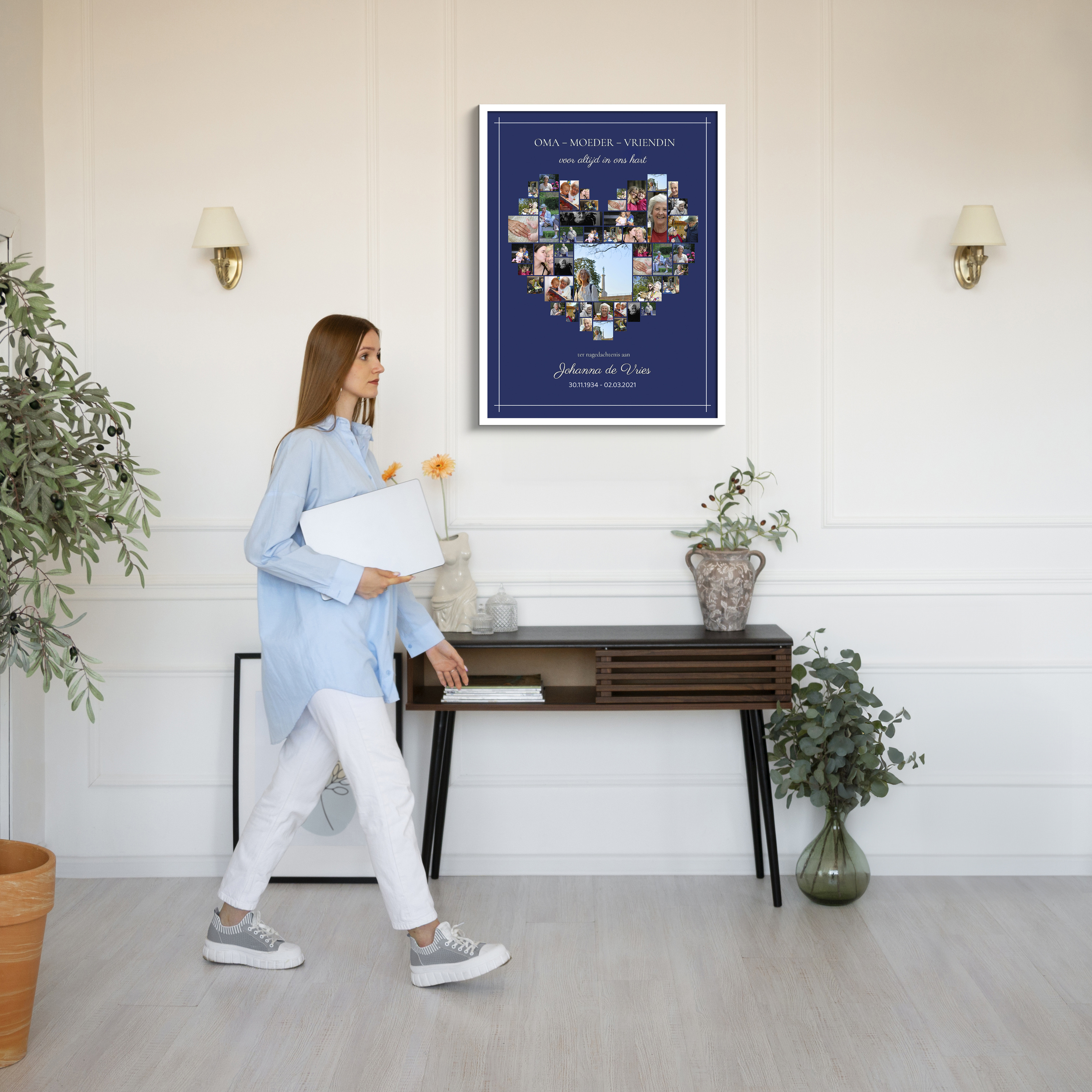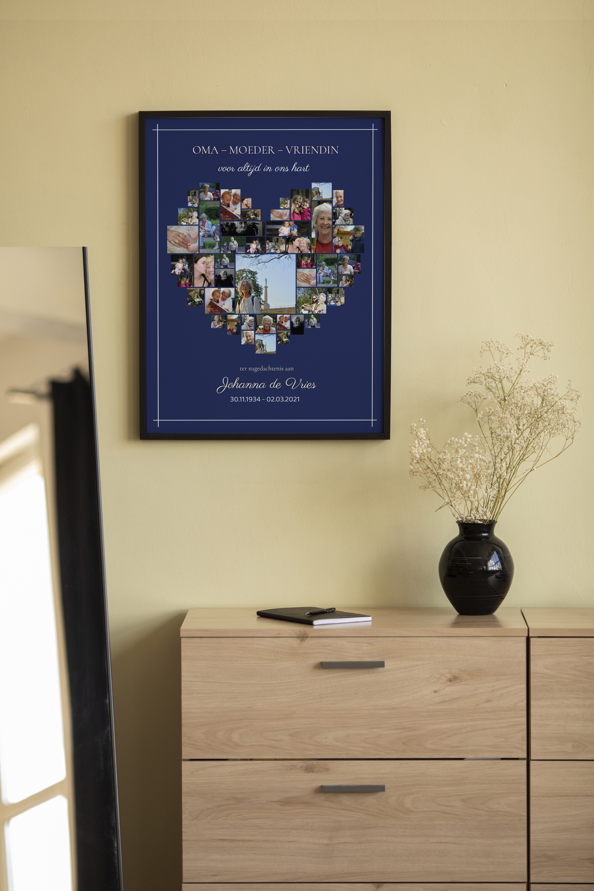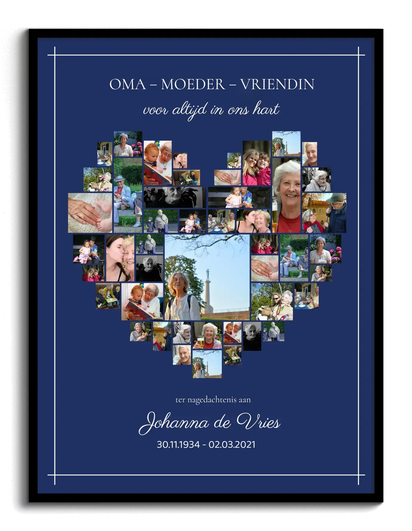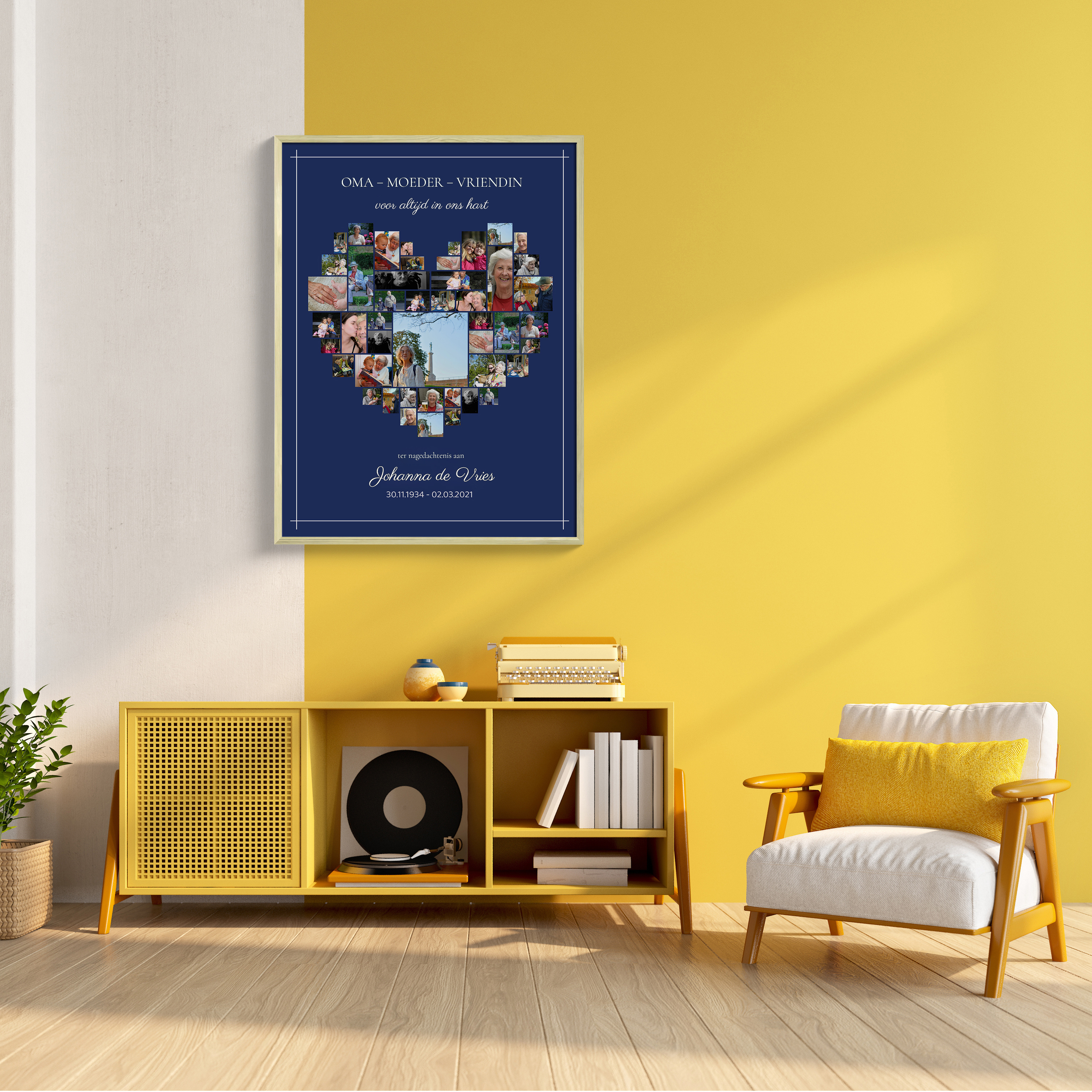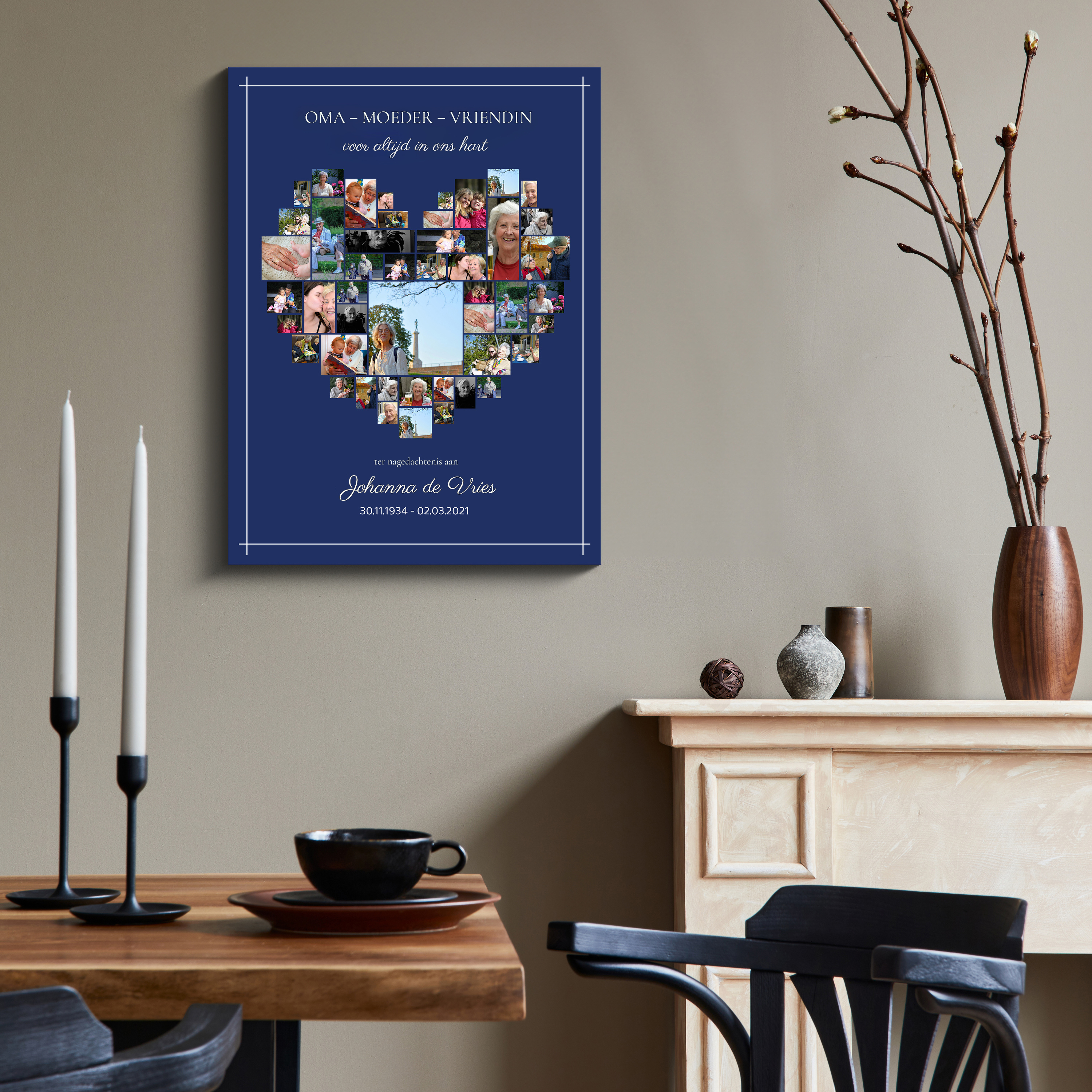 Creëer je persoonlijke herinnering: Hartvormige gedenkcollage op premium canvas