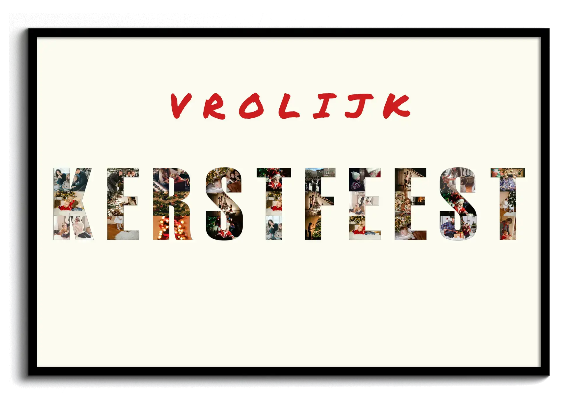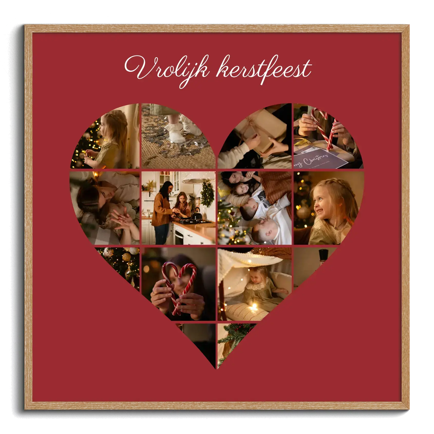 Kerst met familie, vrienden en kinderen: fotocollage als cadeau met tekst Vrolijk Kerstfeest.